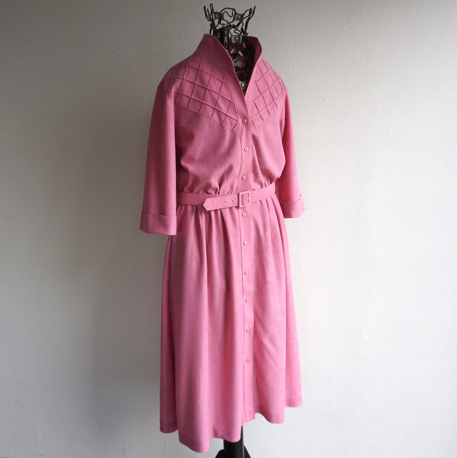 1980’s〜90’s USA製 [Willi] スエードタッチ 3/4スリーブ ウエストマークドレス チェリーピンク 表記(women's 6) ワンピース ヴィンテージ | MAGNOLIA WEBSTORE