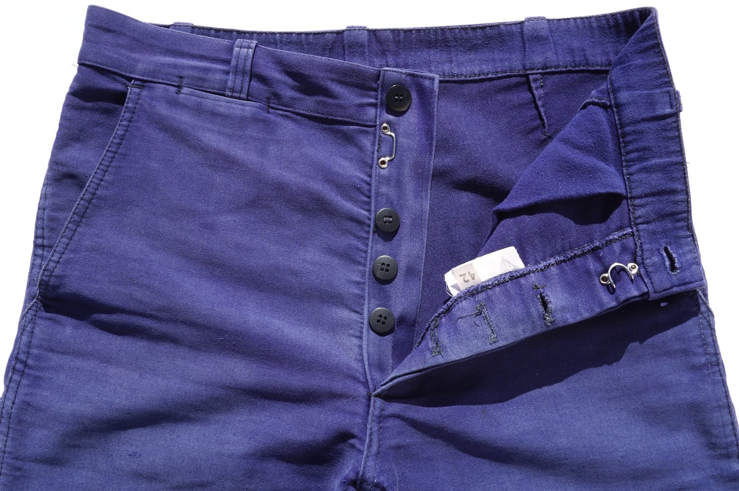 1970’s FRANCE製 [DUBURE & DEVERCHERE] フレンチ モールスキン ワークパンツ ブルー 実寸(W31程度) フランス 1ユーロ ヨーロッパ ヴィンテージ