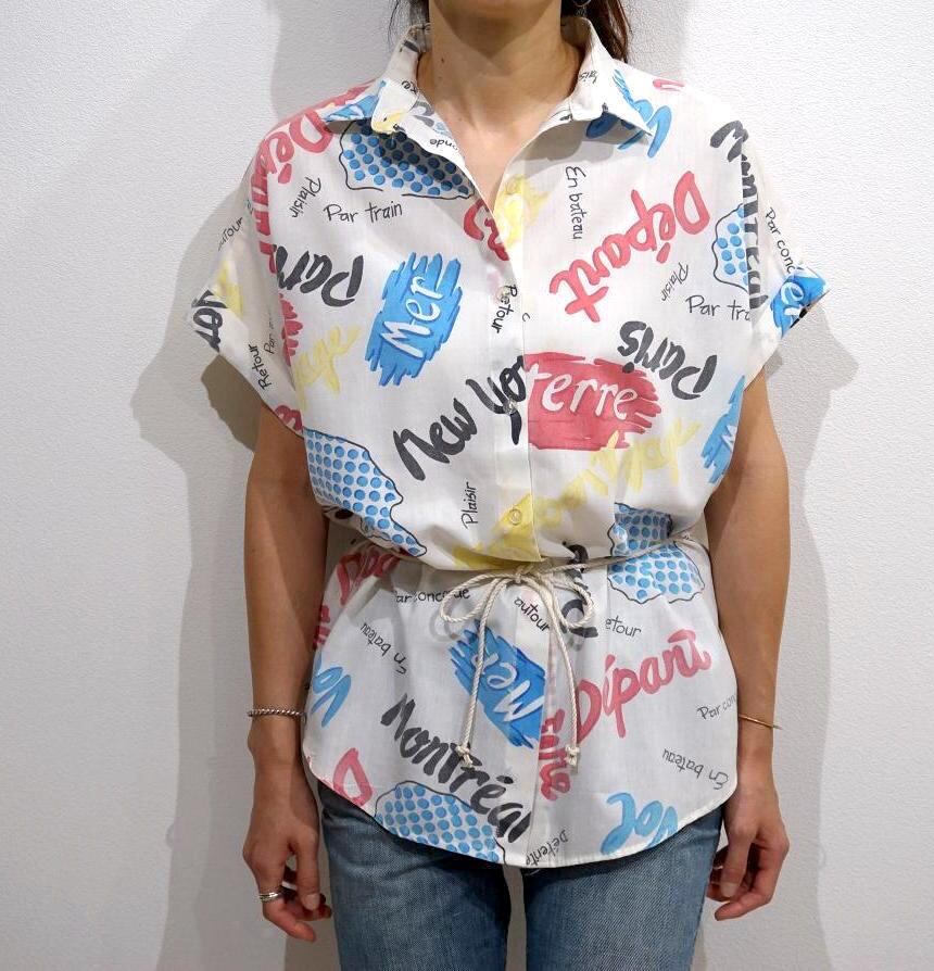 1980’s Front and Center フレンチスリーブシャツ ウエストロープ付 USA製 実寸(ウィメンズM位)