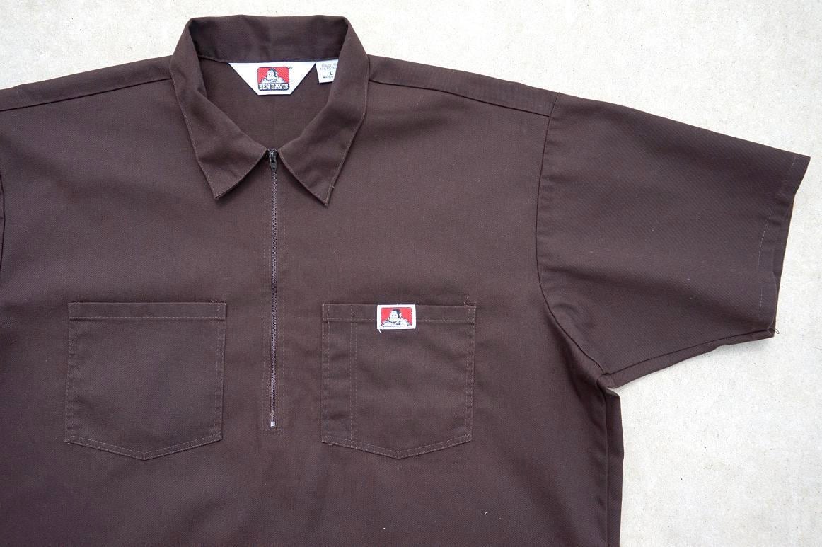 1990’s USA製 BEN DAVIS ハーフジップワークシャツ TALONジップ ブラウン 表記(L) ベンデイビス