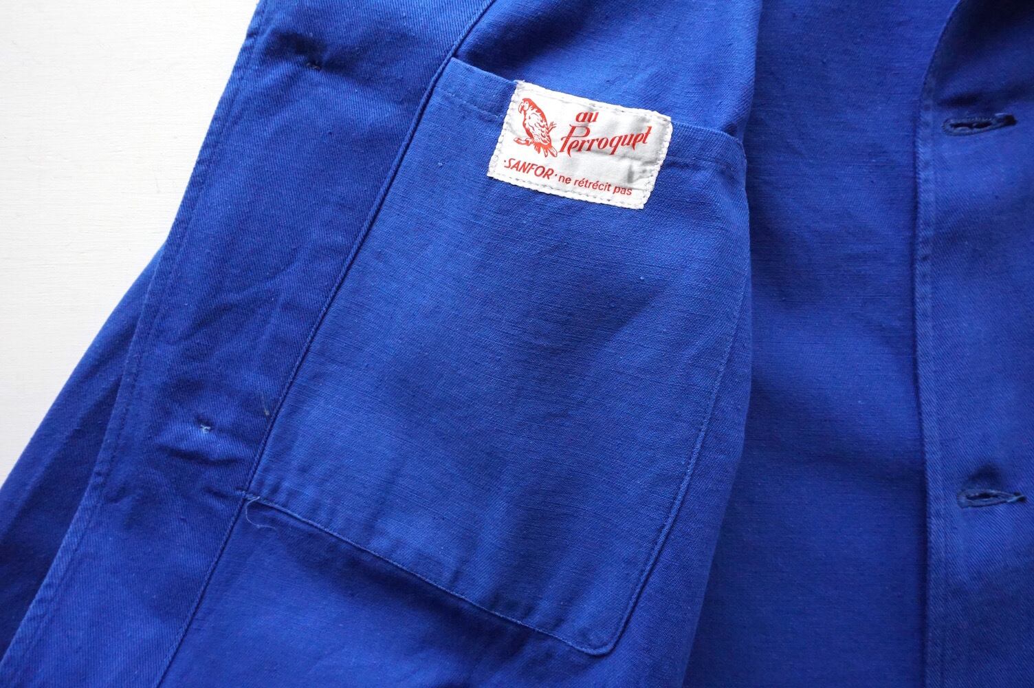 1970’s [au Perroquet] フレンチワークコート ブルー 実寸(S程度) フランス ユーロ ヨーロッパ ショップコート ヴィンテージ
