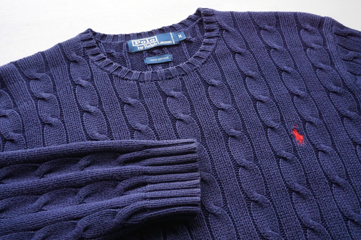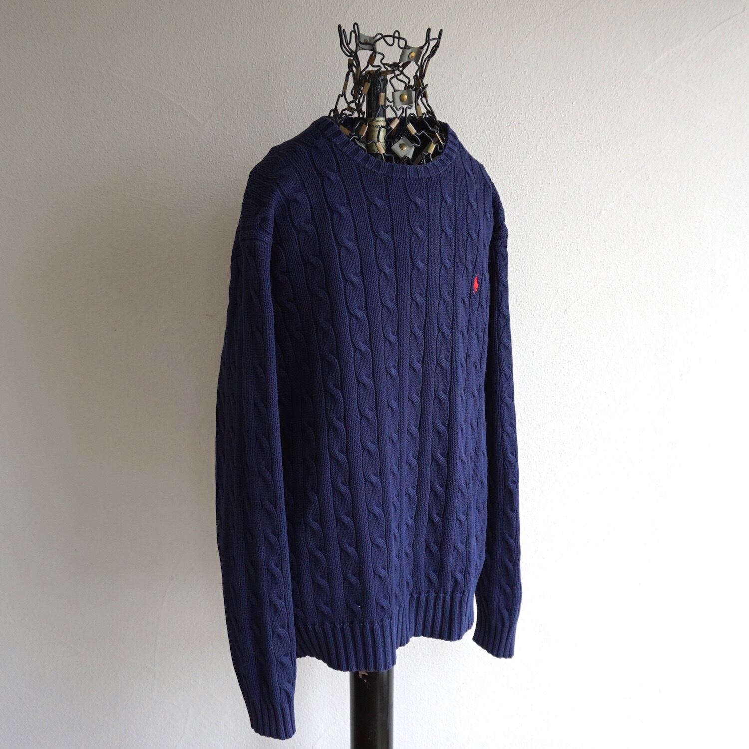 1990’s [Ralph Lauren] 100%コットン ケーブルニットセーター クルーネック ネイビー 表記(M) ラルフローレン