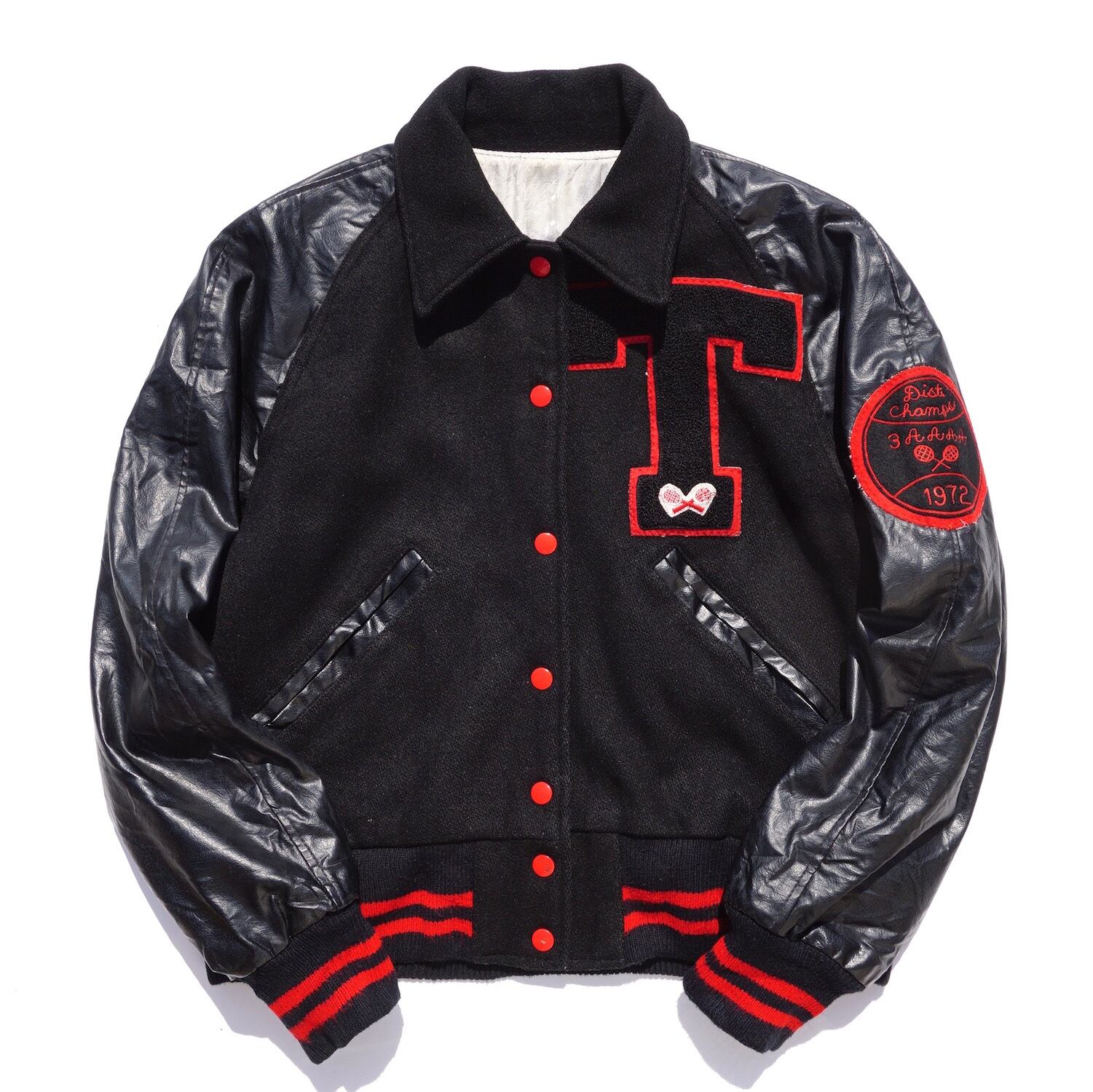 ブラック×レッドの好配色に、"T"(おそらくTexasのT)レタード&チェーンステッチワッペンがノリの良い、アワードジャケット。