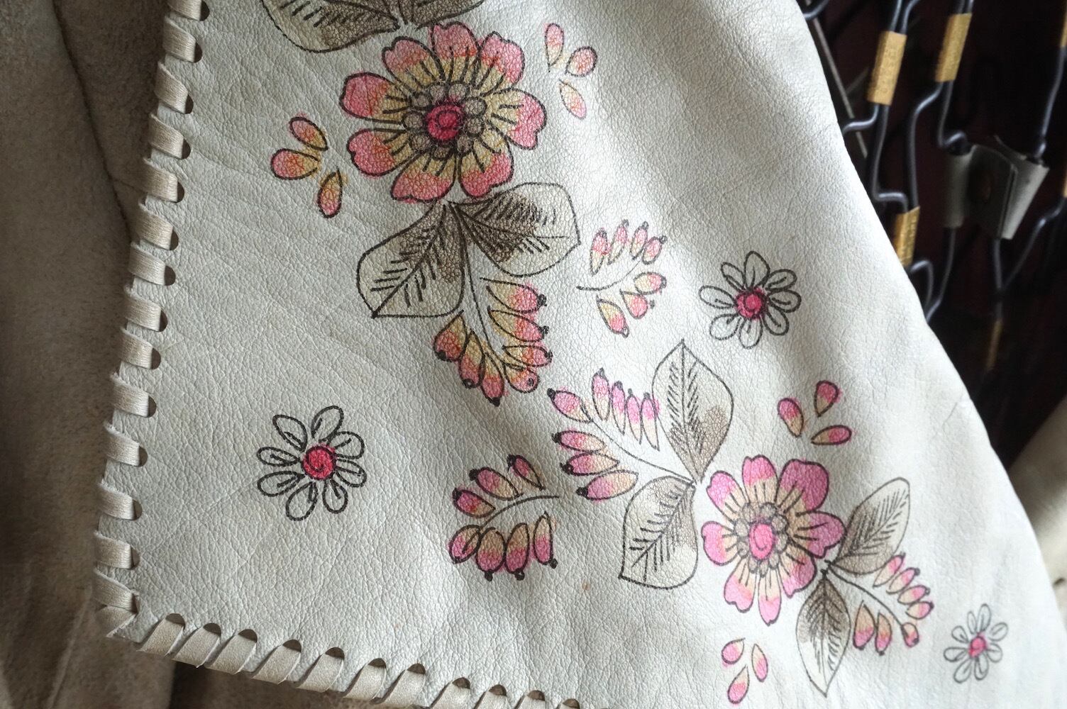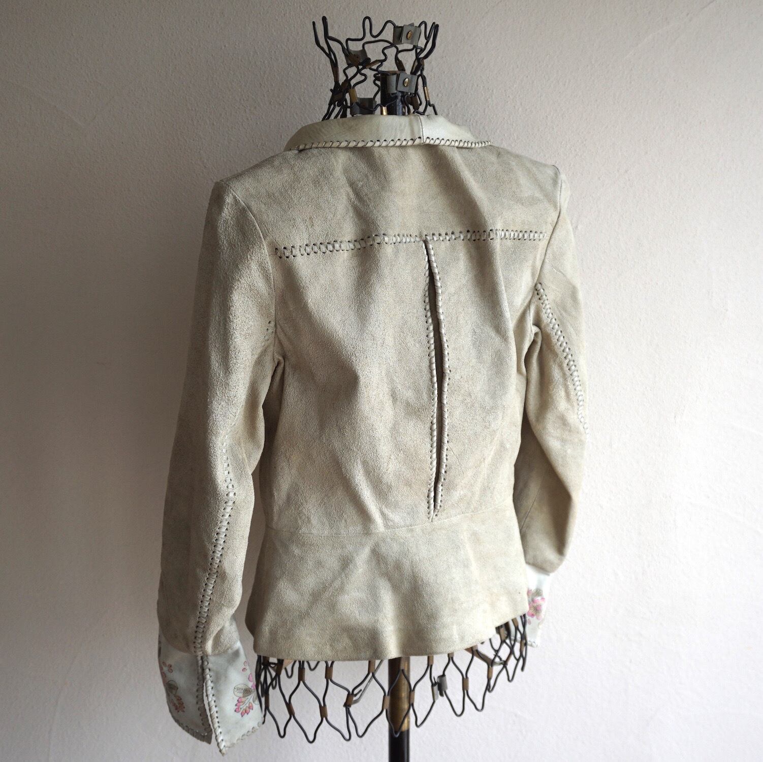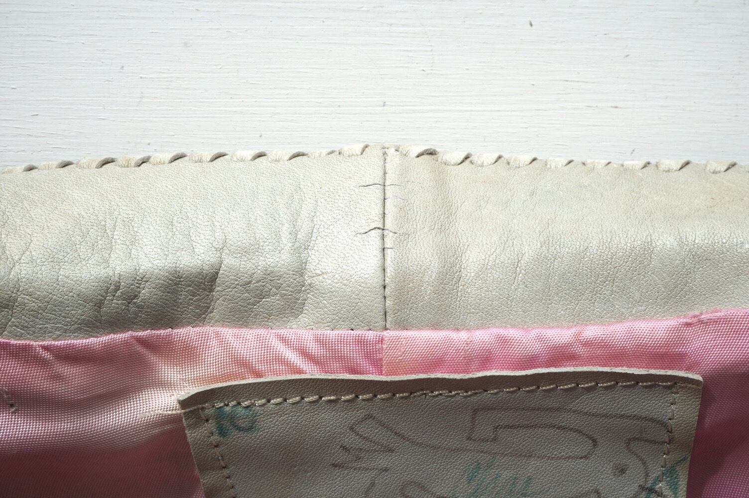1970’s [Char] ハンドペイント ビッグカラー ショート丈 クラフトレザージャケット アイボリー 表記(women's 10) チャー ヒッピー ヴィンテージ