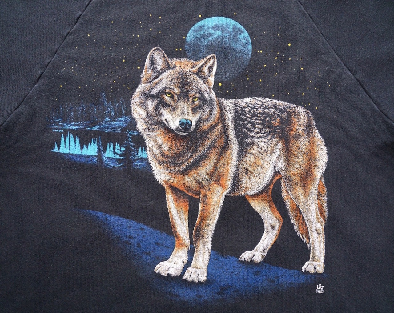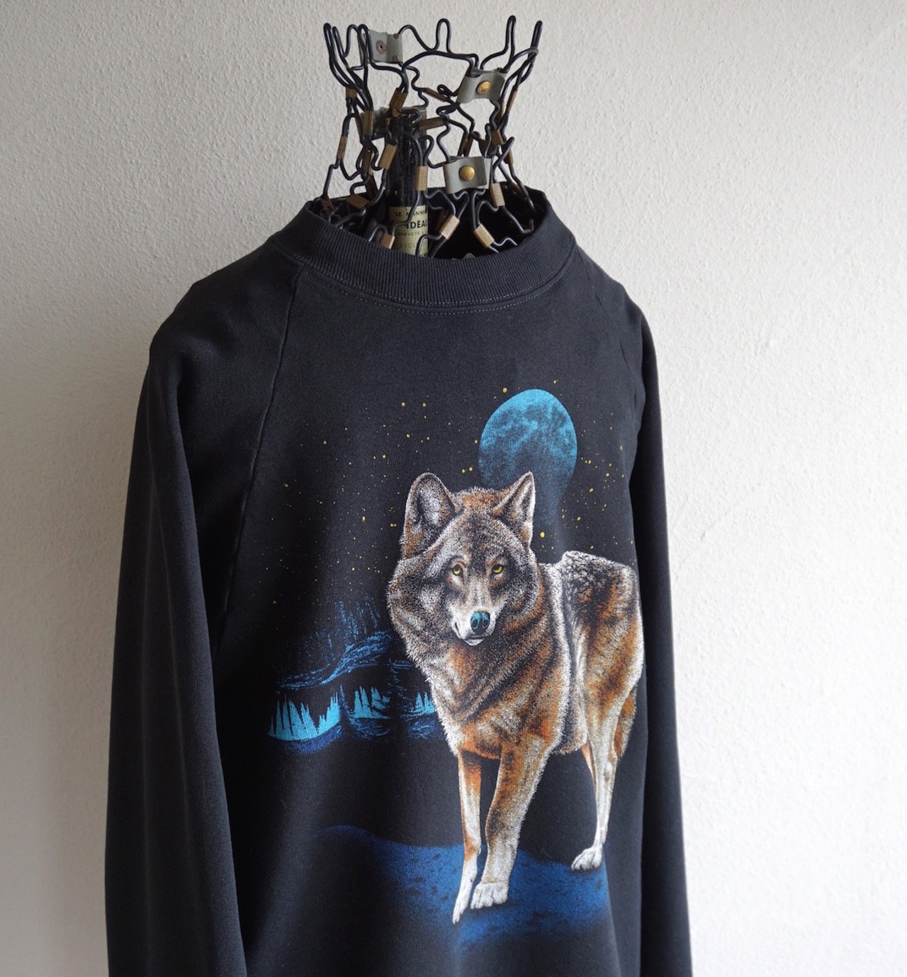 1980’s USA製 [JERZEES] オオカミ アニマルプリント スウェット ラグランスリーブ ブラック 表記(L) RUSSELL ヴィンテージ