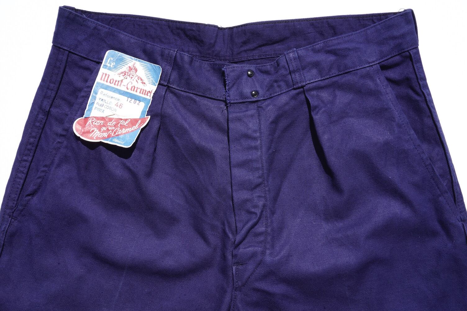DEAD STOCK!! 1950’s〜60’s [Le Mont-Carmel] フラッシャー付 フレンチコットンワークパンツ インクブルー 実寸(W33〜34程度) フランス ユーロワーク ヨーロッパ ヴィンテージ デッドストック