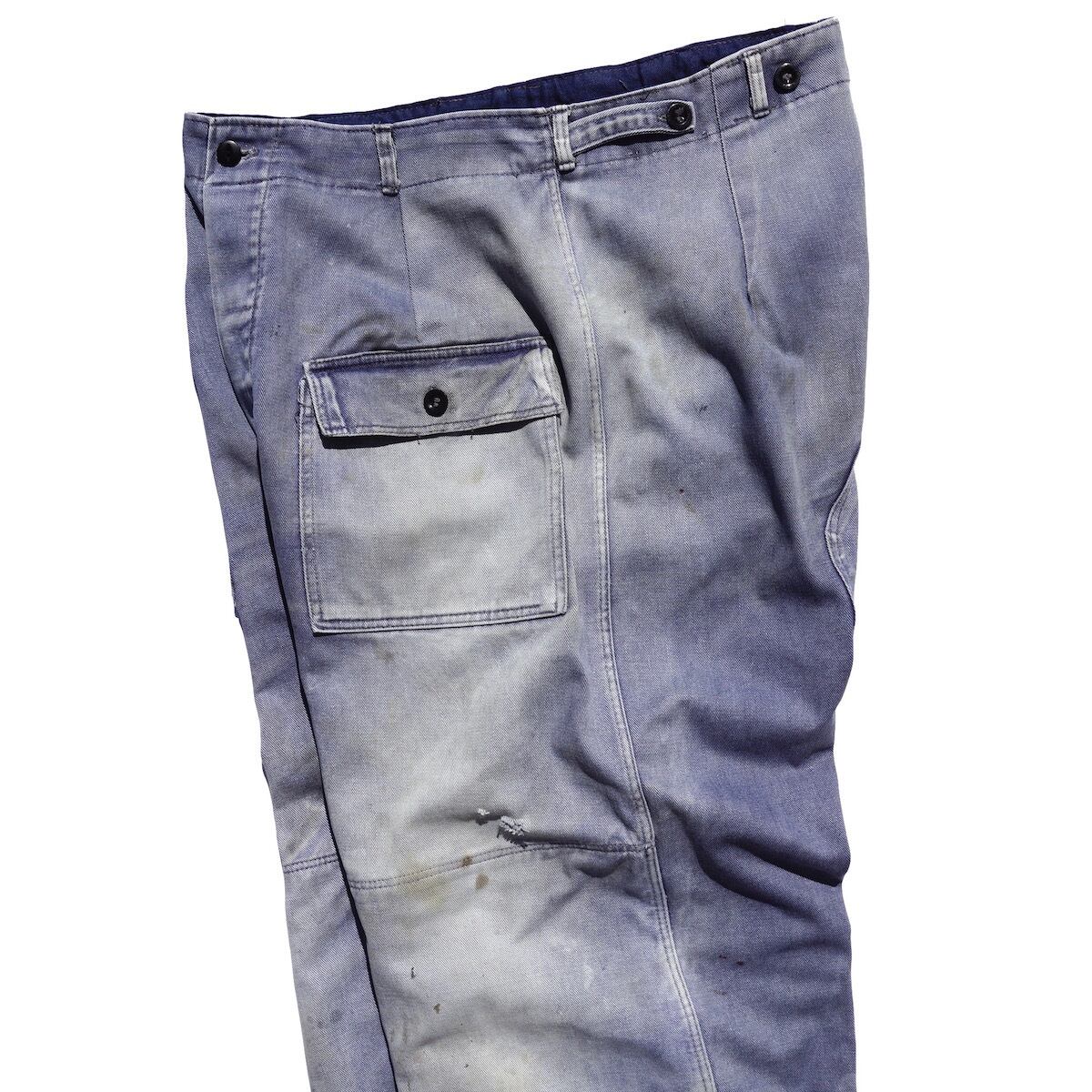 1940’s〜 ユーロワークパンツ パチポケ ダブルニー&ヒップ フェード/ダメージ 実寸(W33〜34程度) ヨーロッパ ヴィンテージ