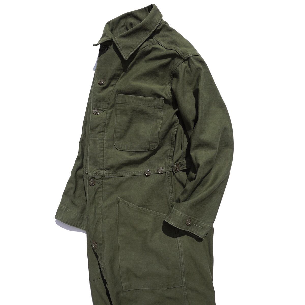 ’81 [U.S.MILITARY] コットンサテンカバーオール TYPE1 初期タイプ オリーブドラブ 表記(SMALL) オールインワン つなぎ アメリカ軍 実物 ヴィンテージ