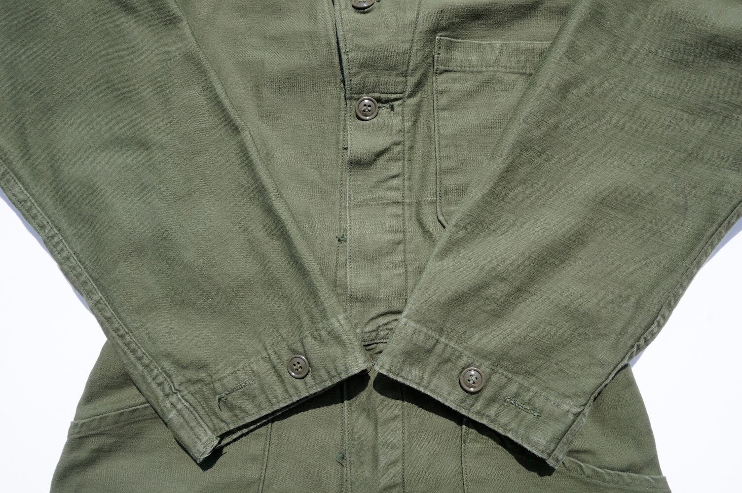 アメリカ軍ユーティリティシャツやベイカーパンツと同生地の、丈夫で風合いの良い100%コットンサテン。