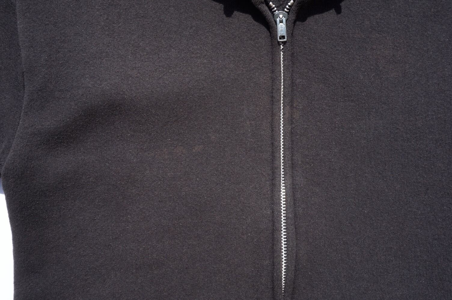 探すとなかなか見付からない、無地ブラックのフルジップスウェットパーカ。
