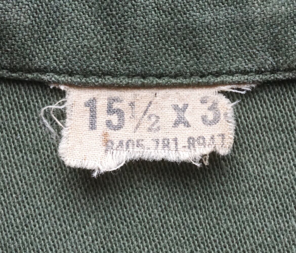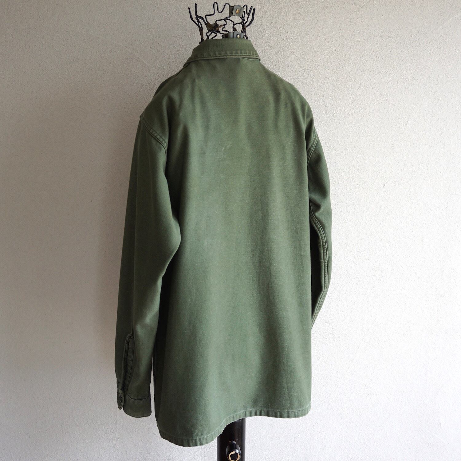 1960’s [U.S.NAVY] "SEABEES" ステンシル コットンサテン ユーティリティシャツ オリーブ 表記(15 1/2) 1968年製 アメリカ海軍 実物 ヴィンテージ