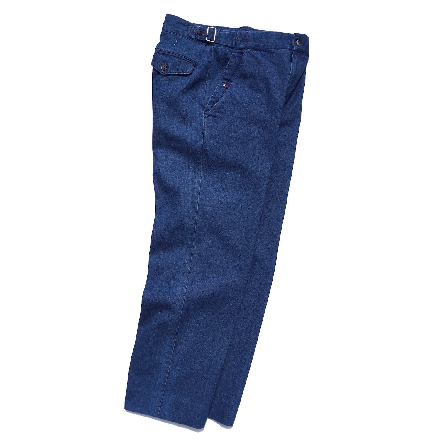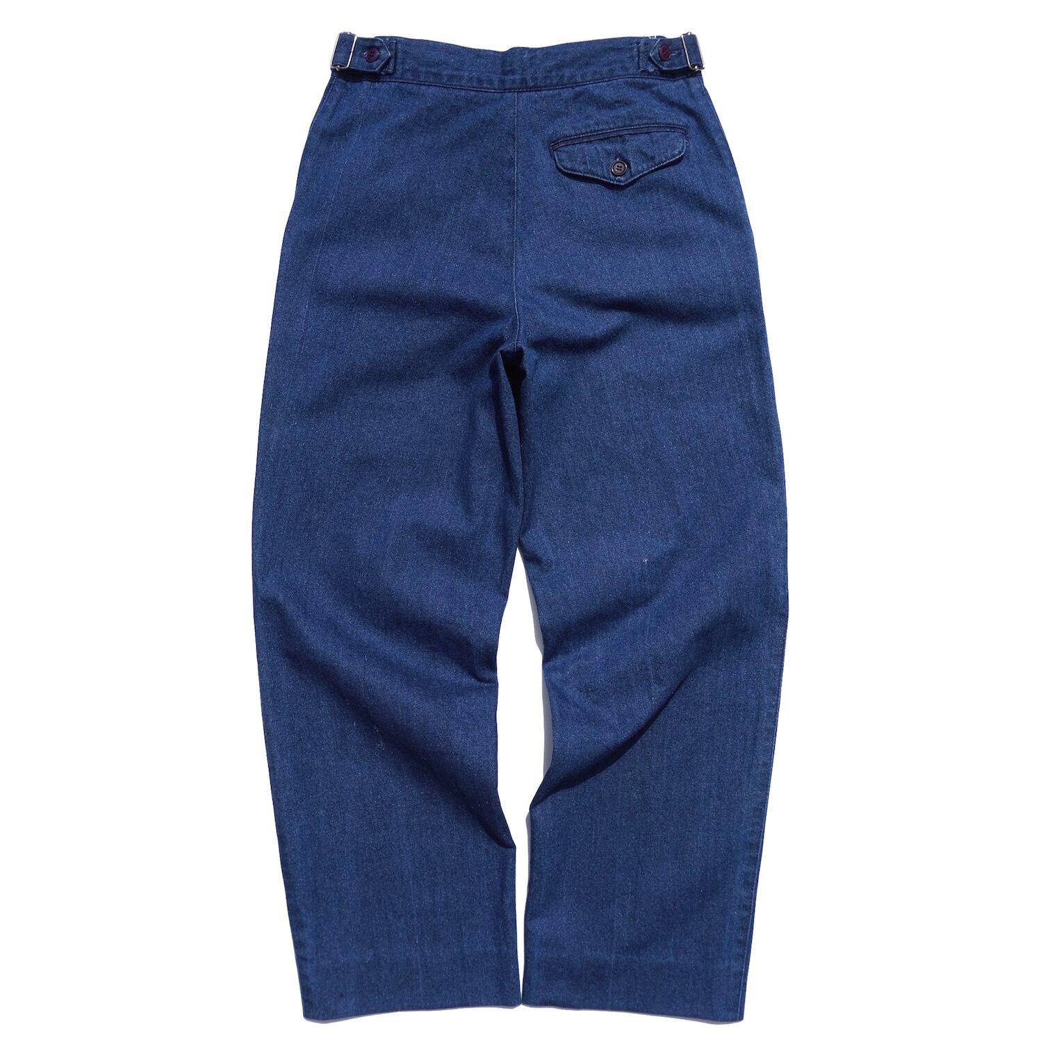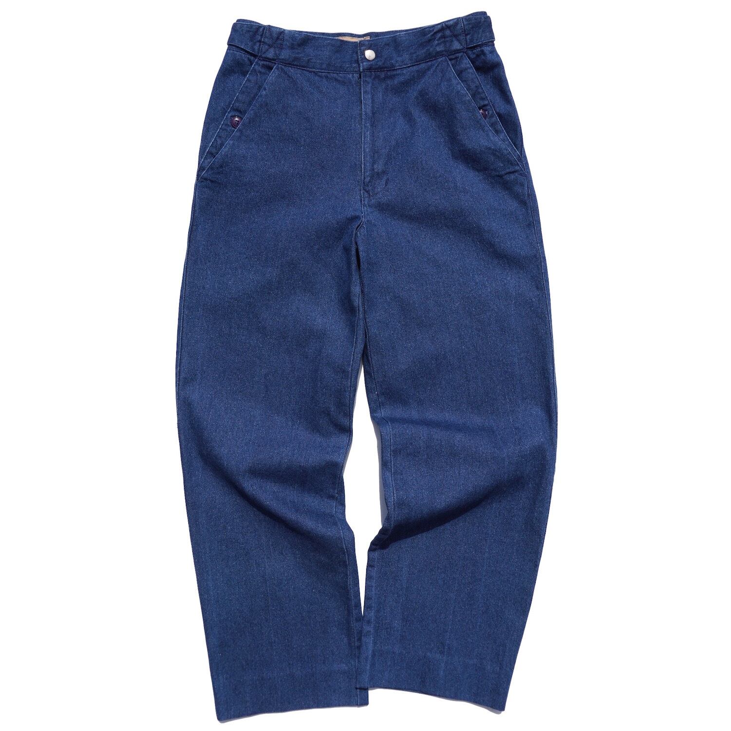 ウエストアジャスターや2部屋式サイドポケットなどのデザインが可愛い、スラックス型デニムパンツ。