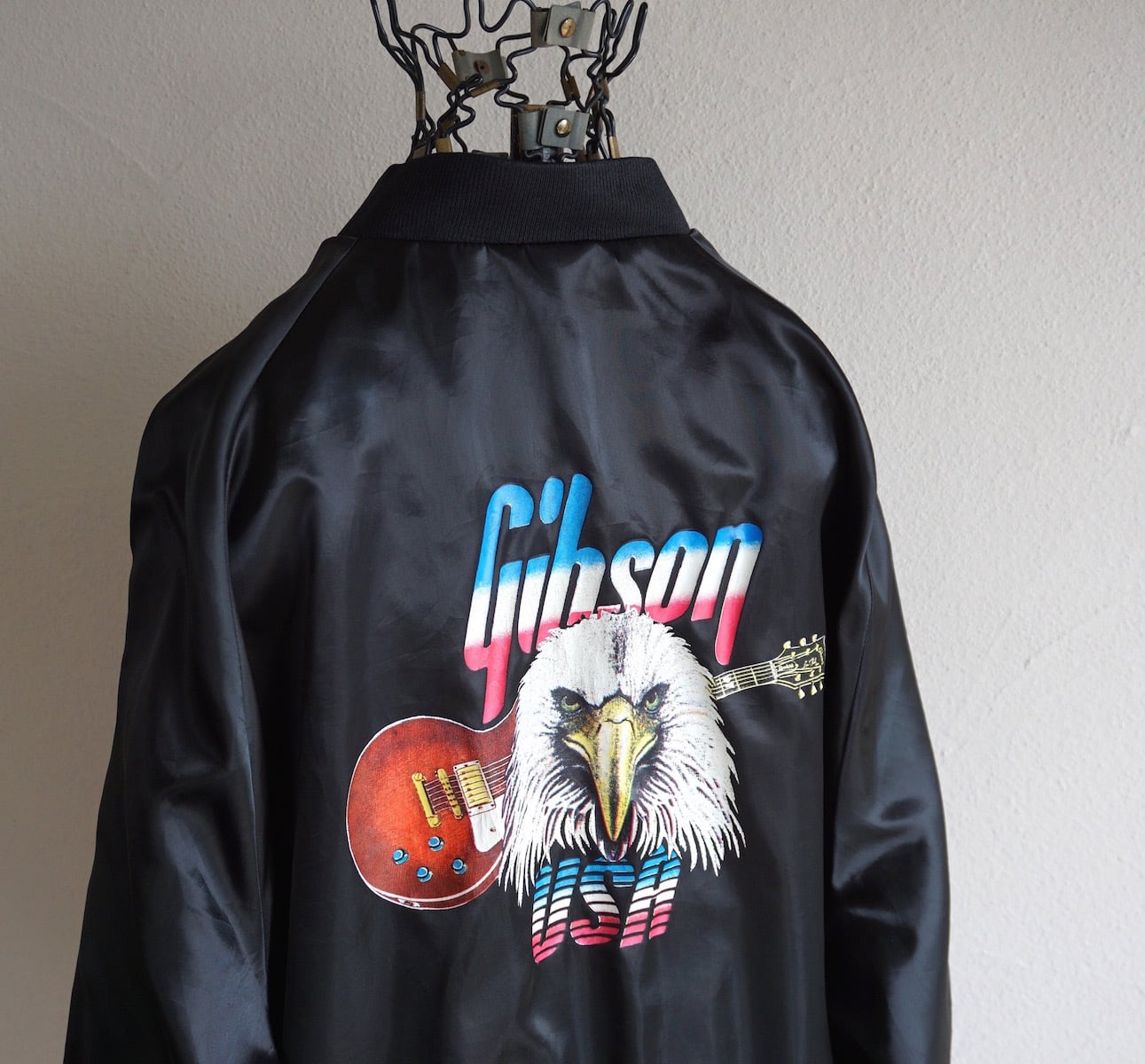 ホワイトヘッドイーグルと、フラッグシップモデル"レスポール"のバックプリントが最高にcoolな、「Gibson」ナイロンサテンジャケット。