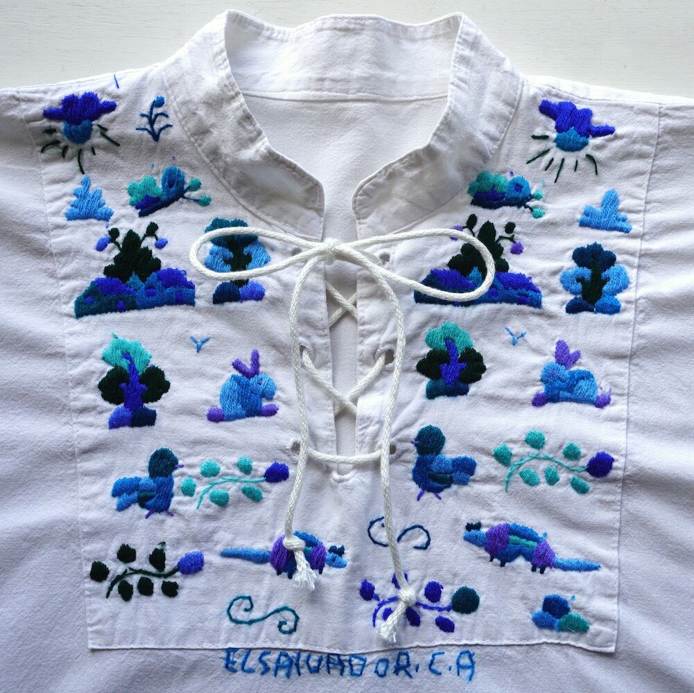 動物や植物の手刺繍とレースアップデザインが可愛い、ヴィンテージチュニック。