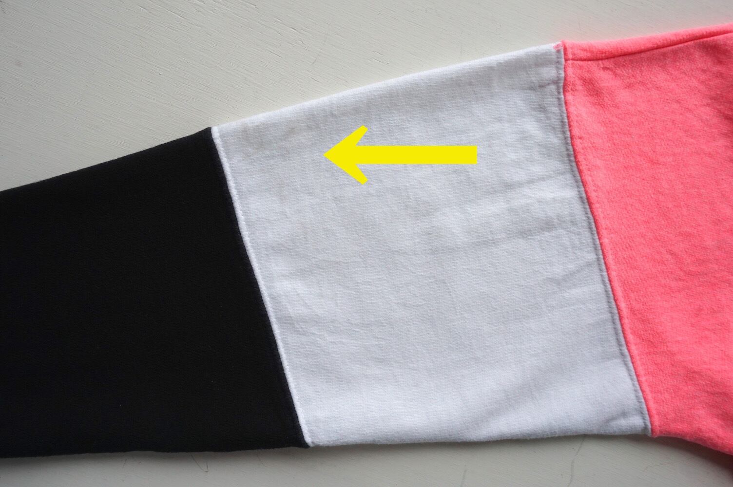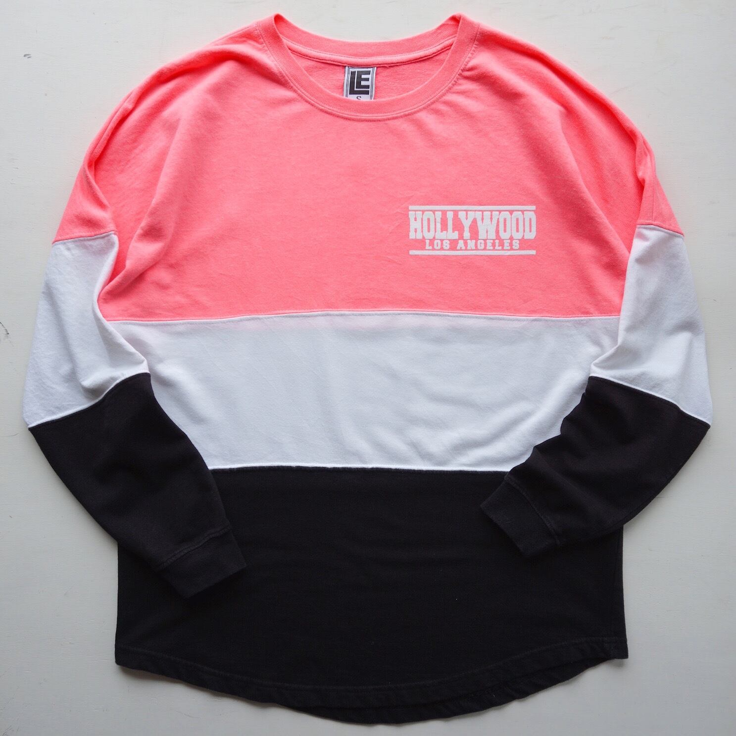 3トーンのボーダー切替に、"HOLLYWOOD Los Angeles"のプリントが入ったスウェットカットソー。
