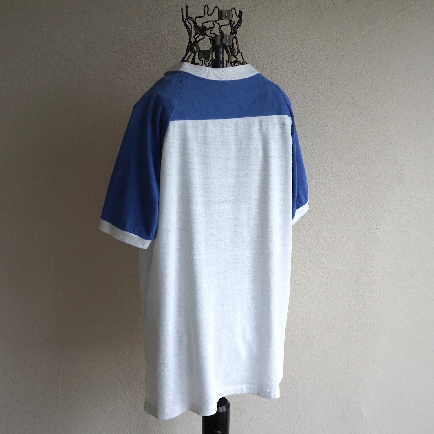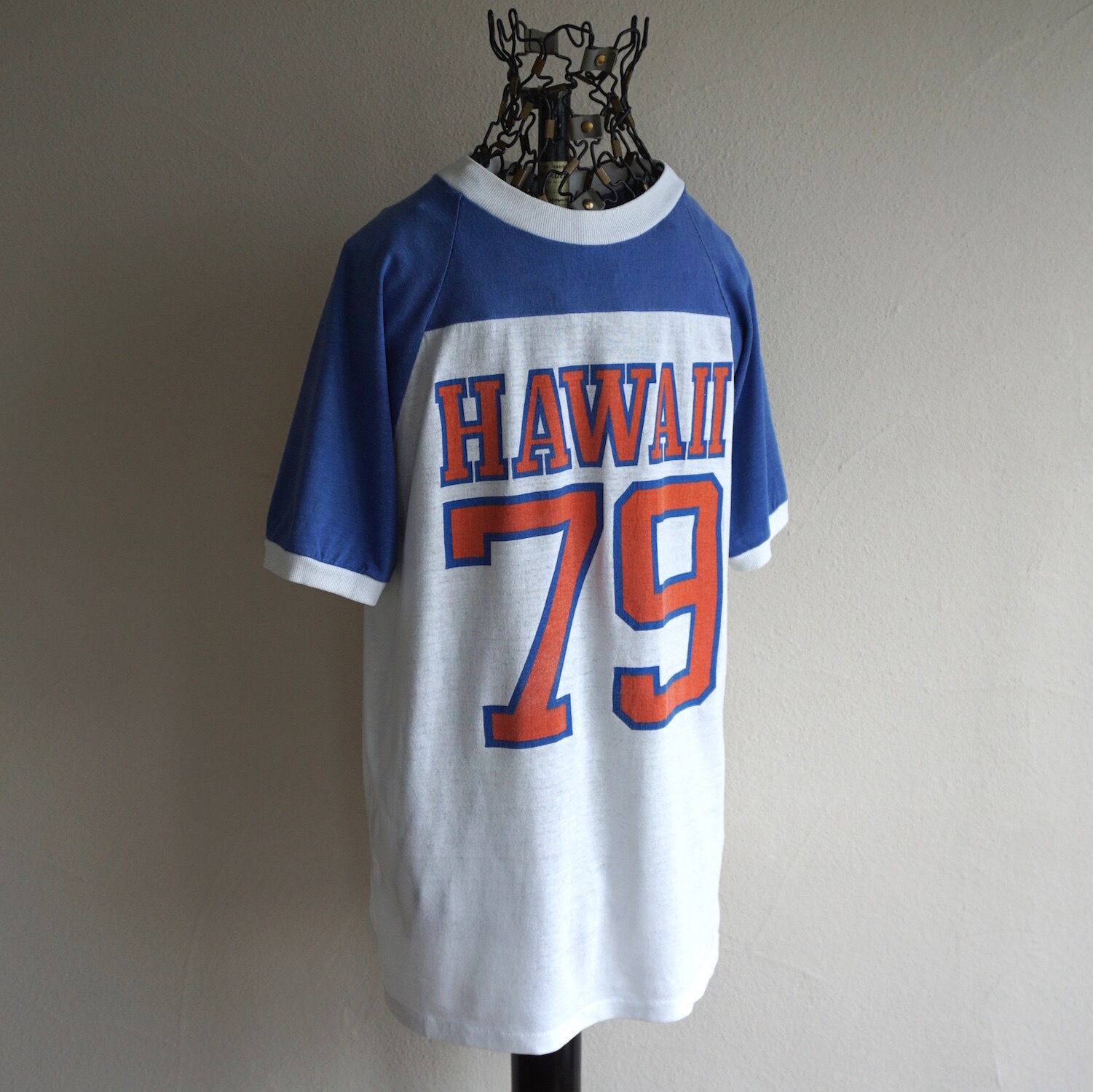 1970’s "HAWAII" 2トーン ラグランスリーブ ビッグナンバリングプリント Tシャツ ホワイト×ブルー 実寸(L程度) ハワイ ヴィンテージ