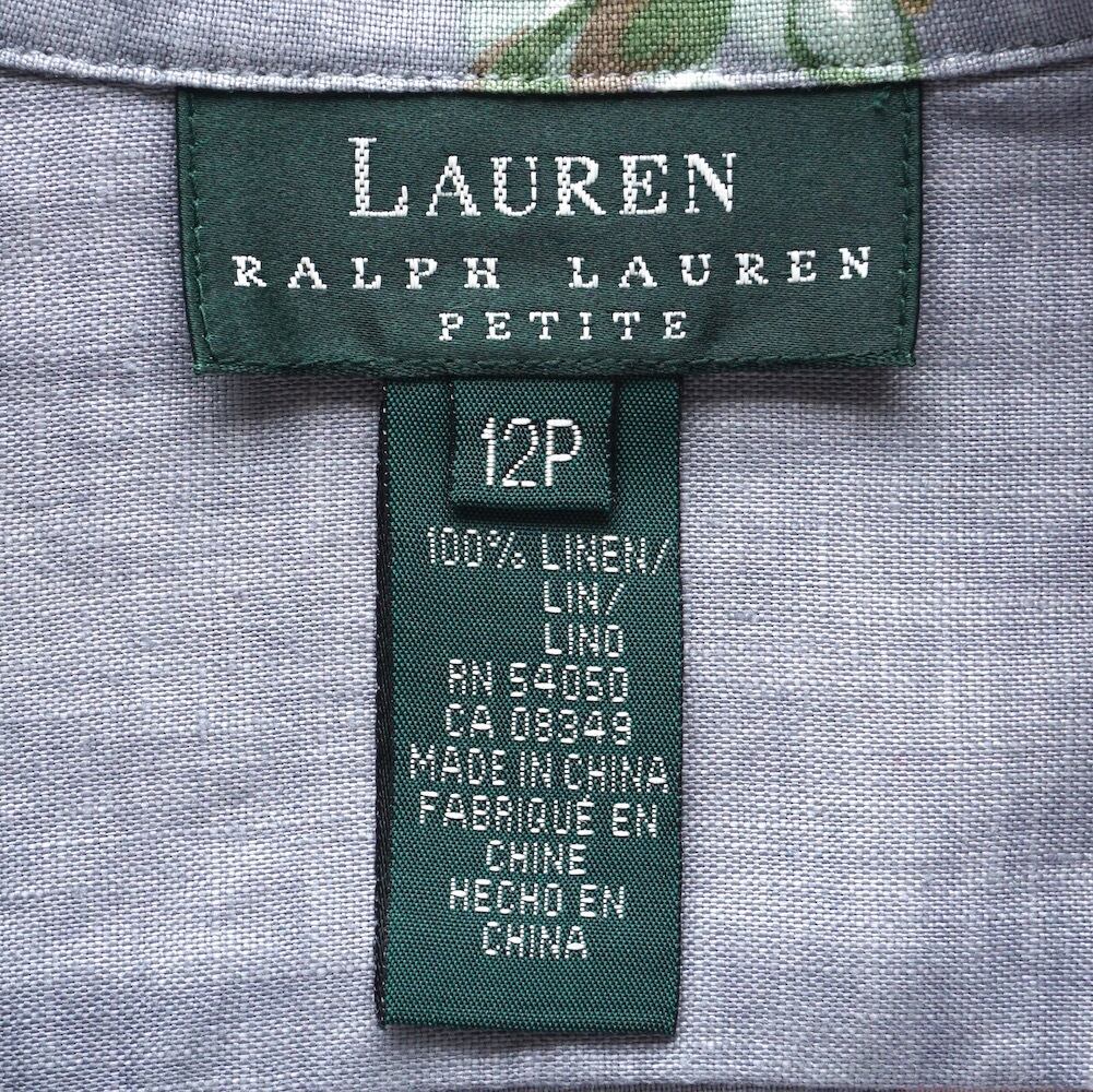 1990’s [LAUREN by Ralph Lauren] 100%リネン オープンカラー S/Sシャツ フローラルパターン 実寸(women's L〜XL程度) 花柄 ラルフローレン ヴィンテージ