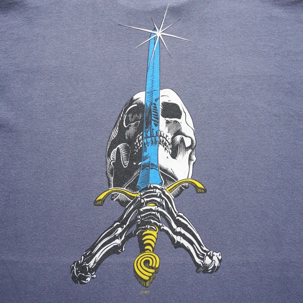 1990’s USA製 [POWELL PERALTA] "SKULL & SWORD" オールドスケートTシャツ 100%コットン ブルーグレー 表記(L) レイ・ロドリゲス スカルソード パウエル・ペラルタ ヴィンテージ