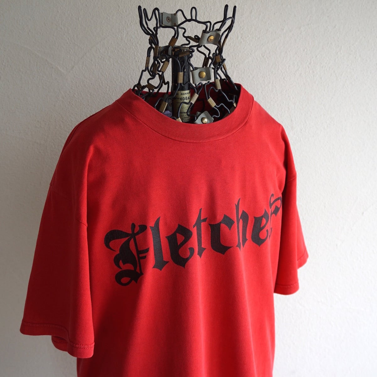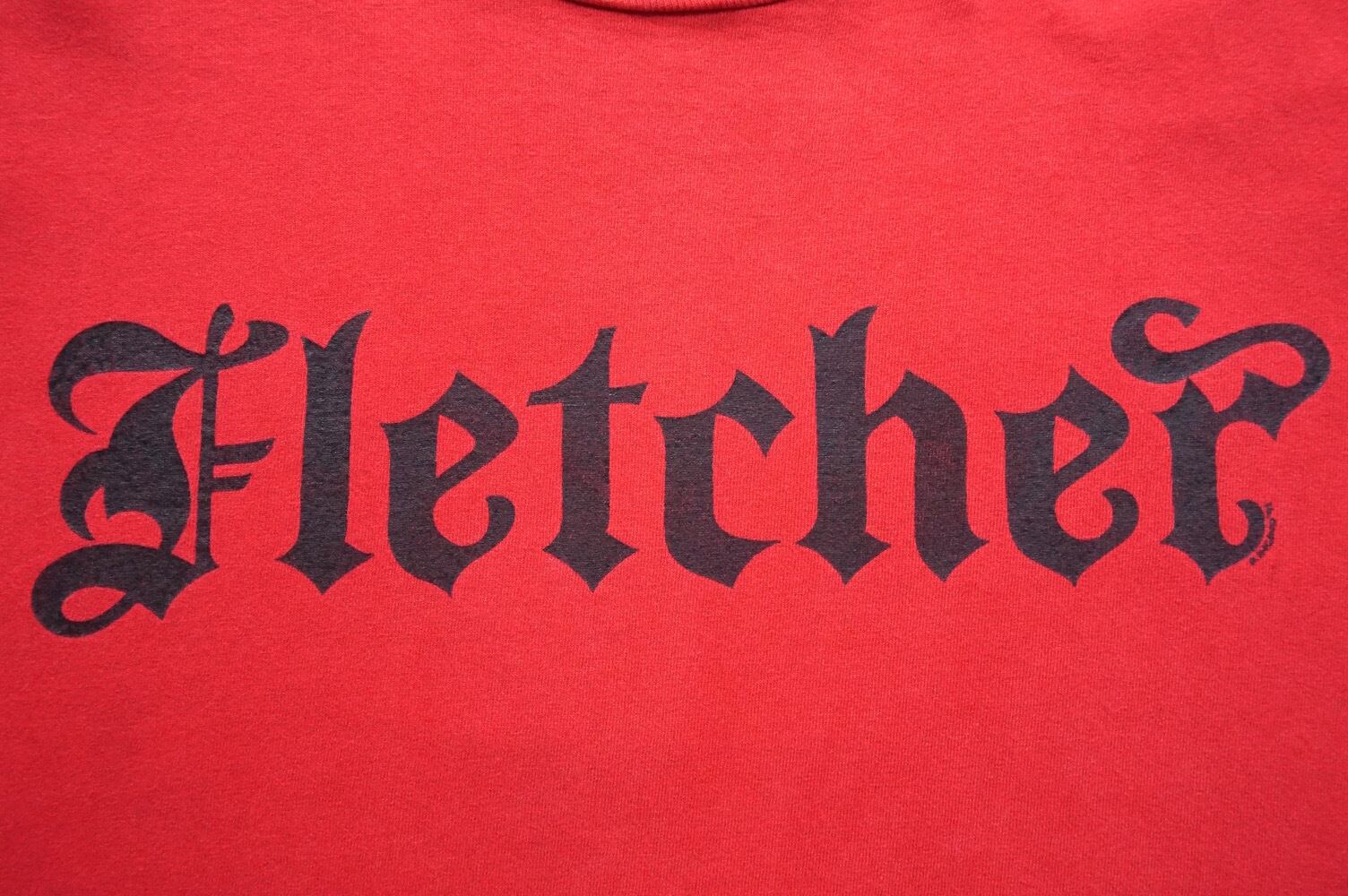 1990’s USA製 [Nathan Fletcher] アイアンクロス&オールドイングリッシュ オールドサーフスケートTシャツ 100%コットン レッド 表記(M) ネイザン・フレッチャー ヴィンテージ 1991