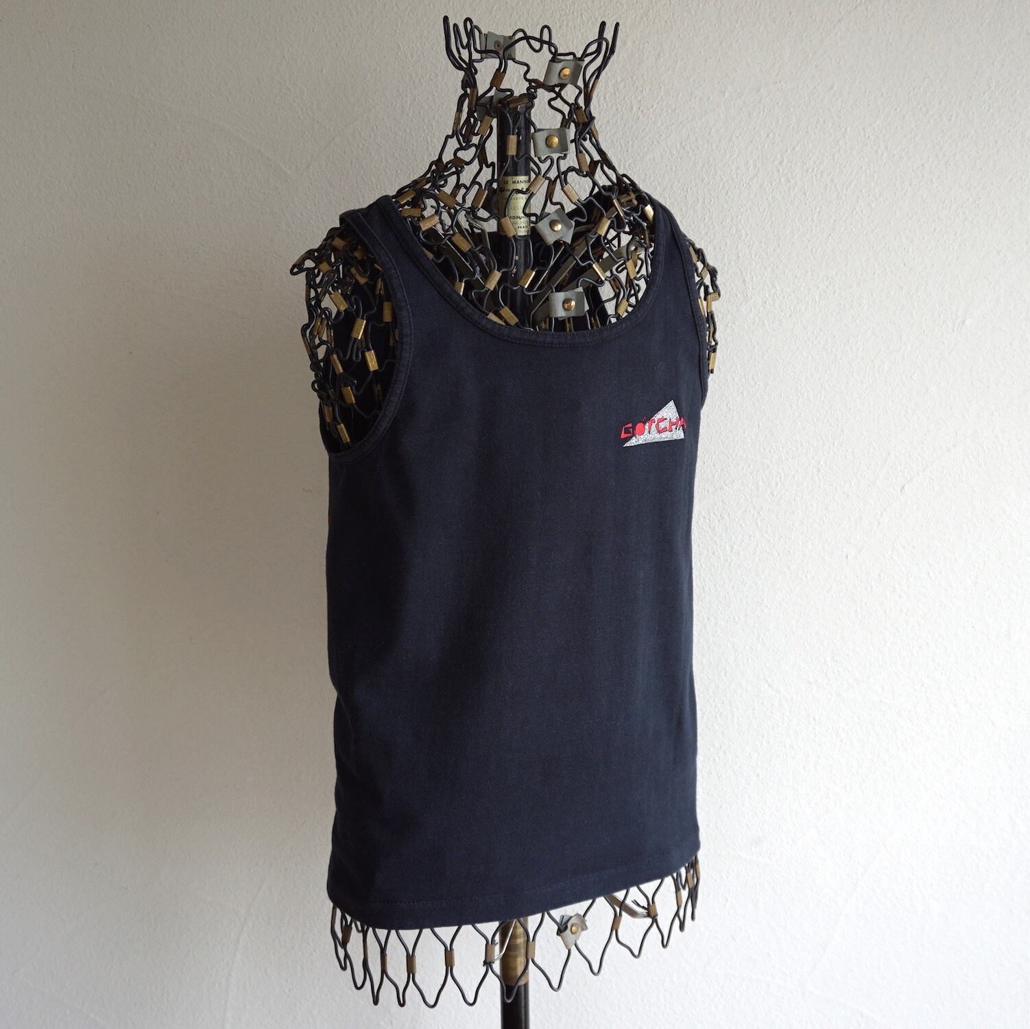 1980’s〜90’s USA製 [GOTCHA] 両面プリント 100%コットン タンクトップ ブラック 実寸(XXS) オールドサーフ ガチャ ヴィンテージ