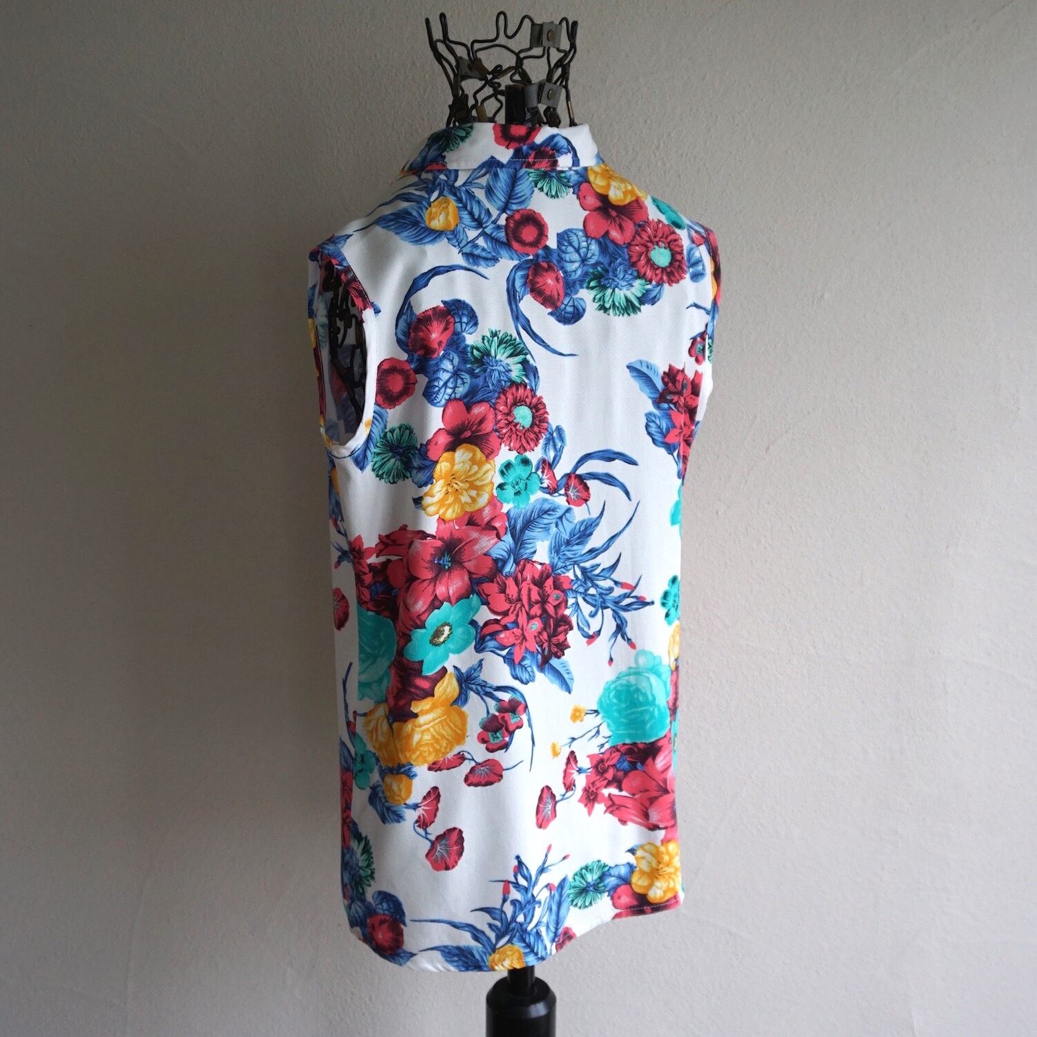 綺麗なフローラル柄の、スリーブレスシャツ。