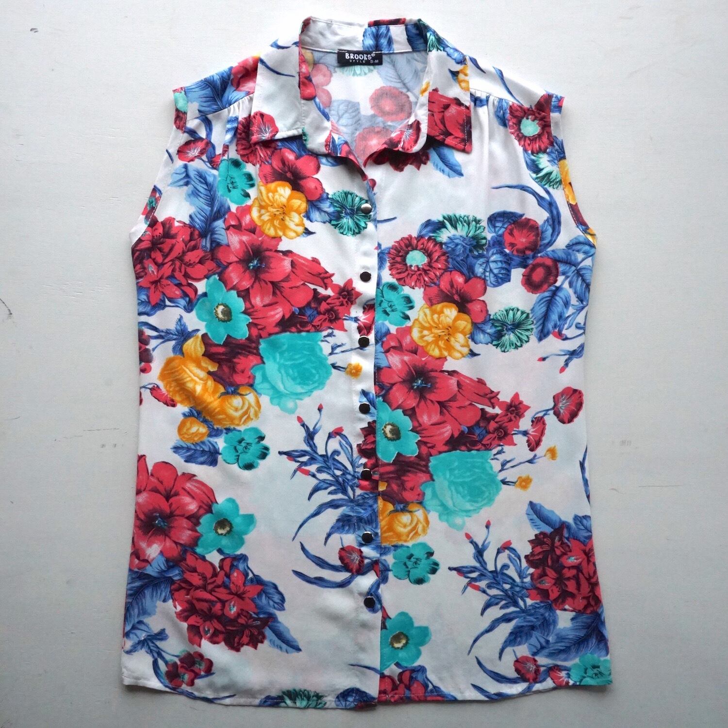 1980’s〜90’s [BROOKS] フローラルパターン スリーブレスシャツ ホワイト 表記(women's S-M) 花柄 ヴィンテージ