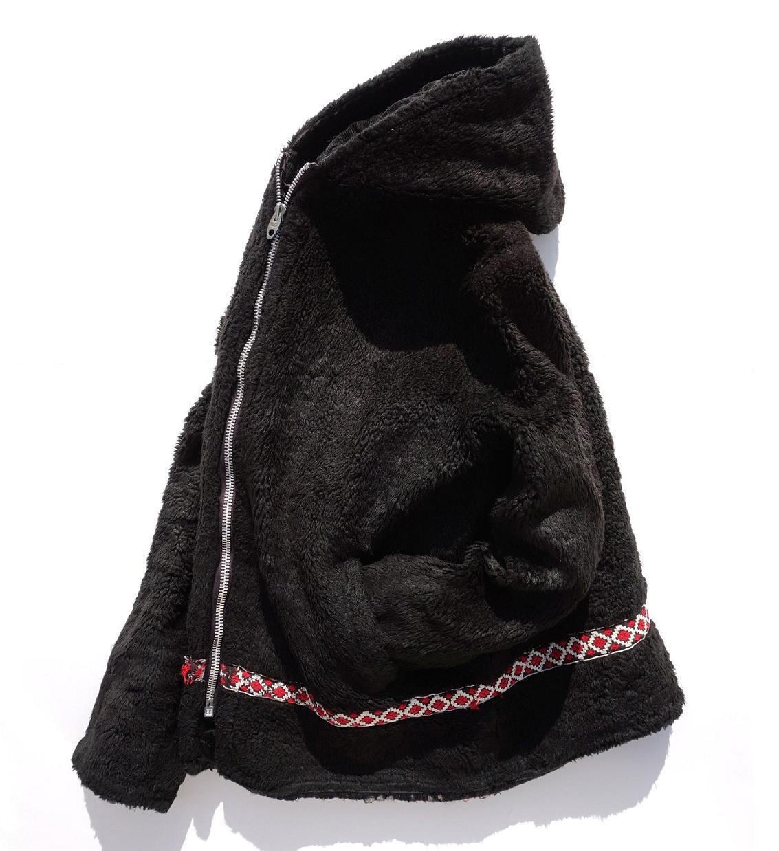 ブラックのパイル生地に、赤のチロリアンテープが映える1着。