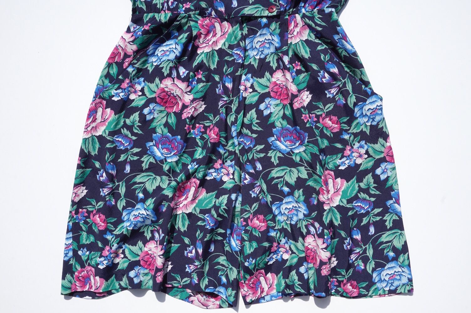 1980’s〜90’s USA製 [CIMMARON DRESS] キュロットドレス ネイビー×フローラル柄 実寸(women's M程度) ジャンプスーツ ワンピース ヴィンテージ