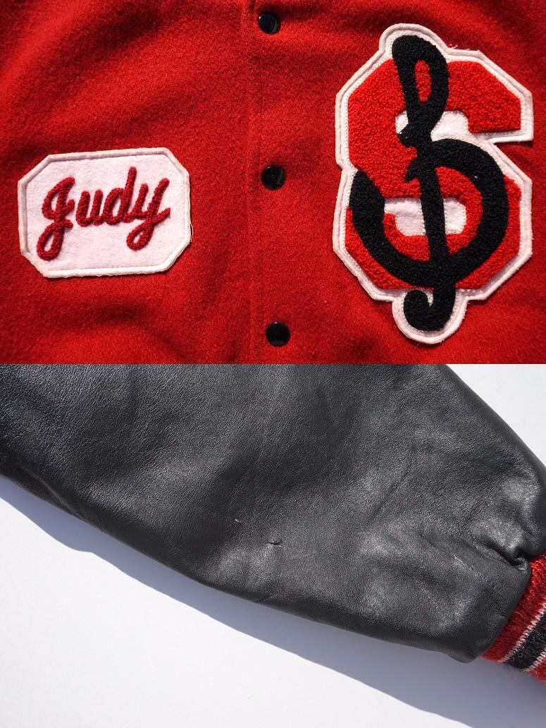1970’s [DeLONG] メルトン×レザー スタジャン ト音記号ワッペン レッド×ブラック 表記(42)