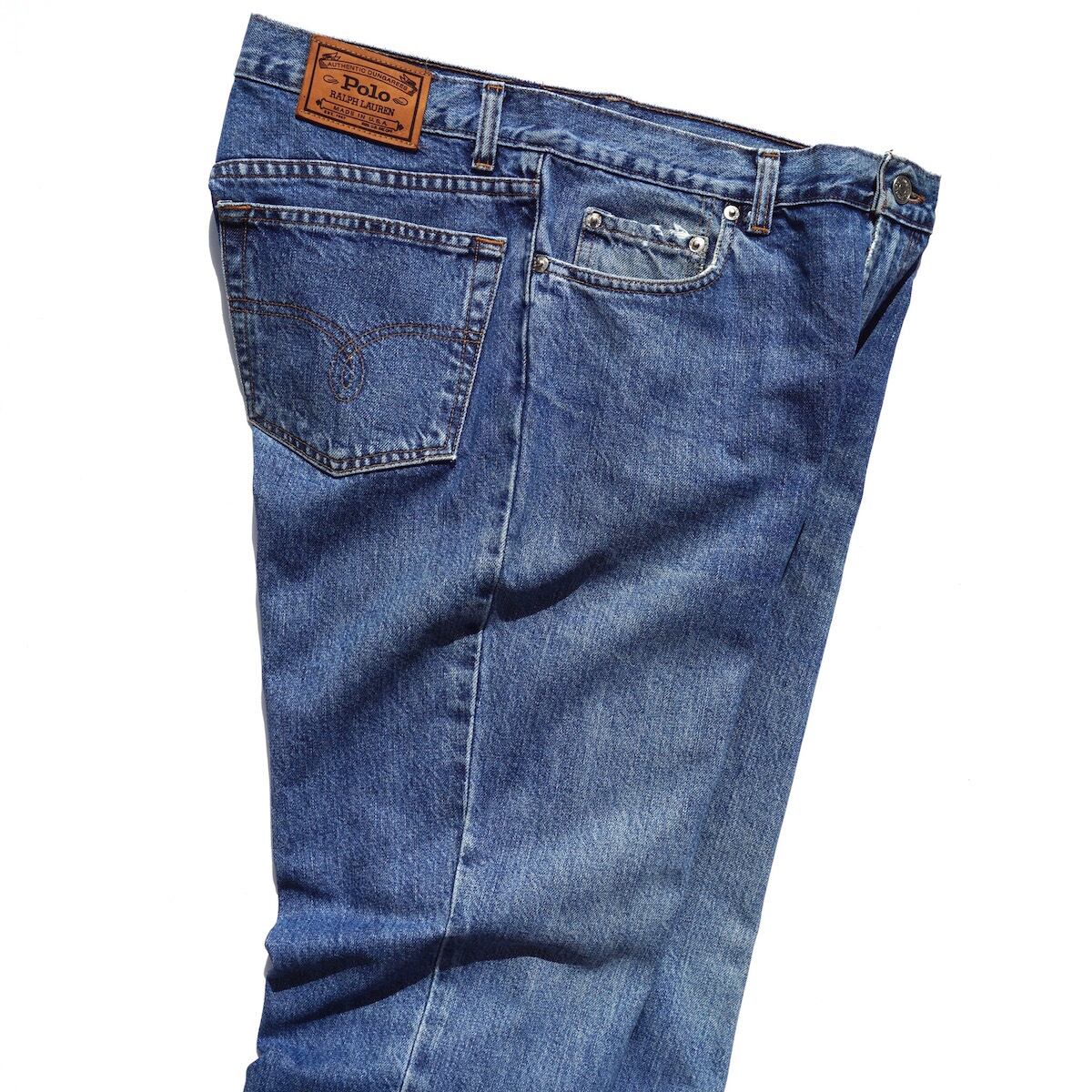 1990’s USA製 [Ralph Lauren] 5ポケット ストレートジーンズ レザーパッチ ヒゲ 縦落ち 表記(W36) ラルフローレン ヴィンテージ