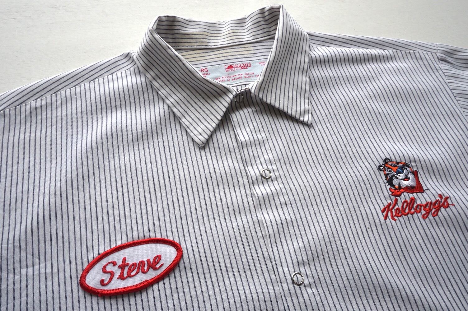 1990’s USA製 [RED KAP] "Kellogg's" トニー刺繍 ストライプワークシャツ 表記(L) ケロッグ ヴィンテージ