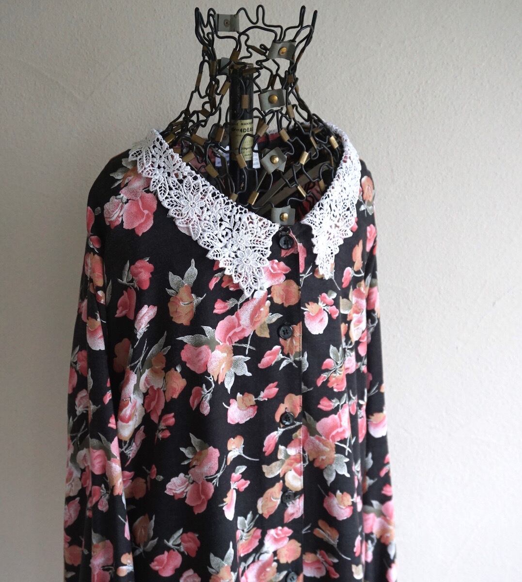 1990’s ユーロ レースカラー L/S フローラルブラウス ブラック 実寸(women's XL〜程度) ヨーロッパ ヴィンテージ