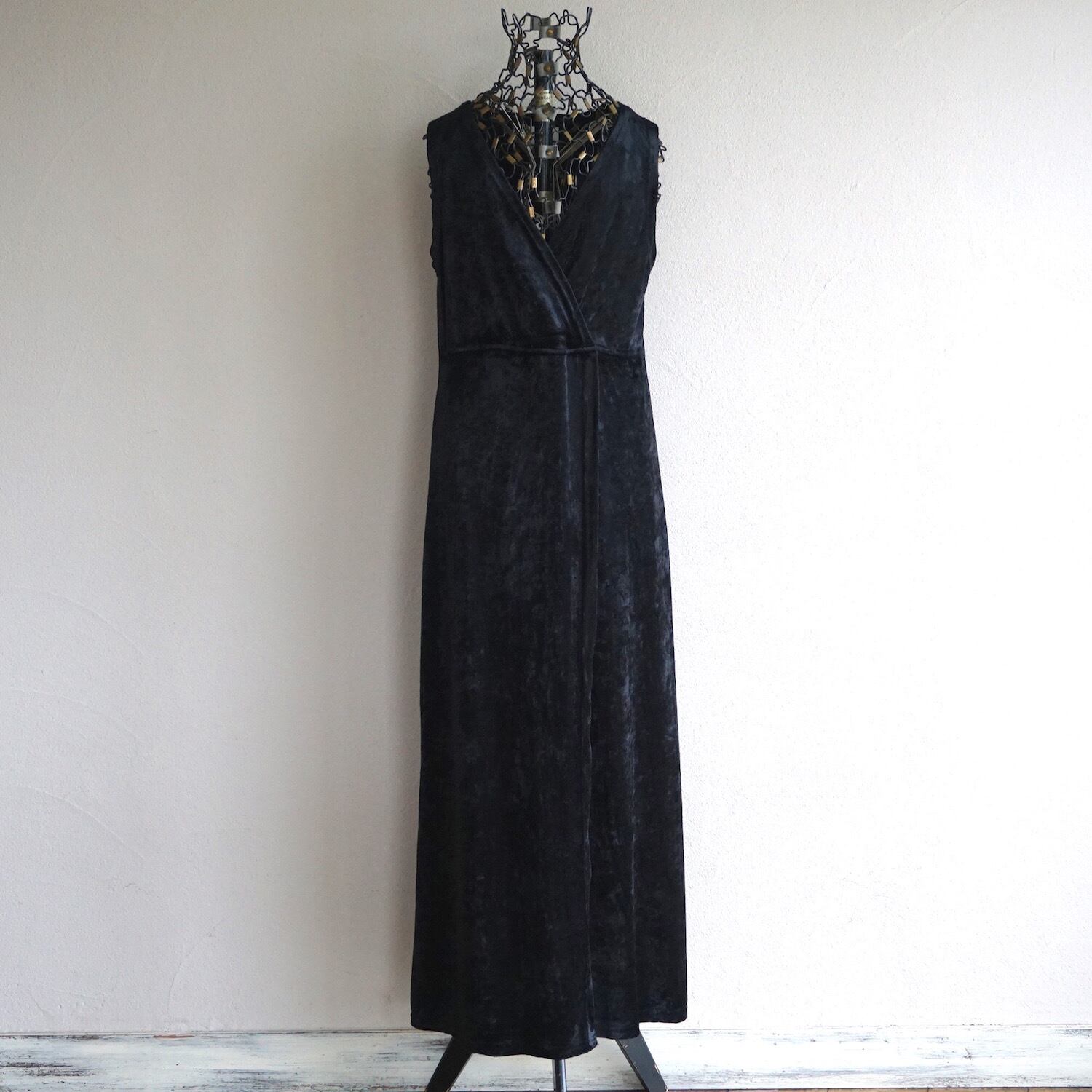 1990’s [Miss H EXPRESS] カシュクール スリーブレス ベロアマキシドレス ブラック 表記(S) ワンピース ヴィンテージ
