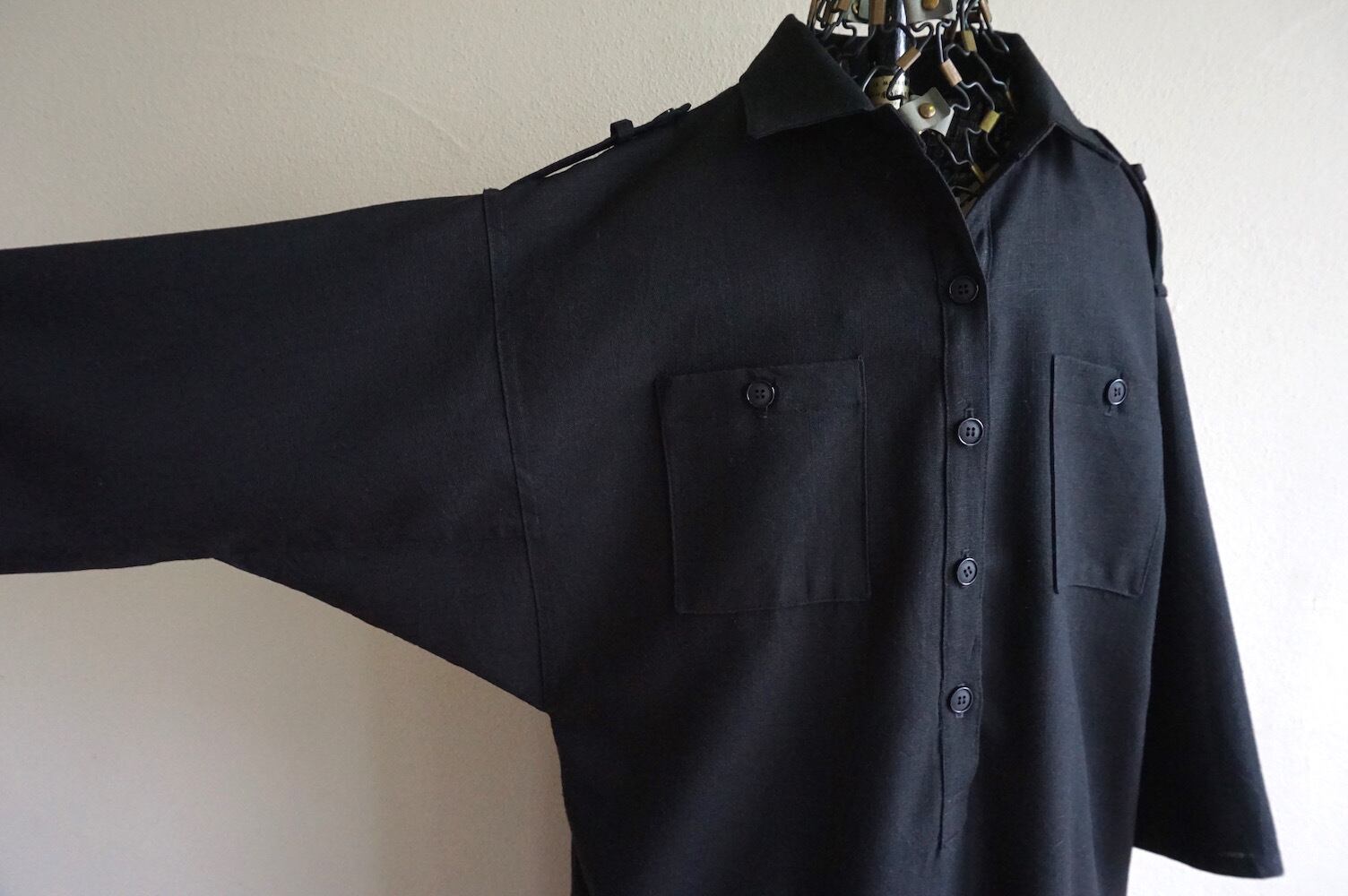1980’s〜1990’s [Lloyd Williams] ワイドボックスシルエット プルオーバーシャツドレス オールブラック 実寸(women's M〜L程度) ワンピース ヴィンテージ
