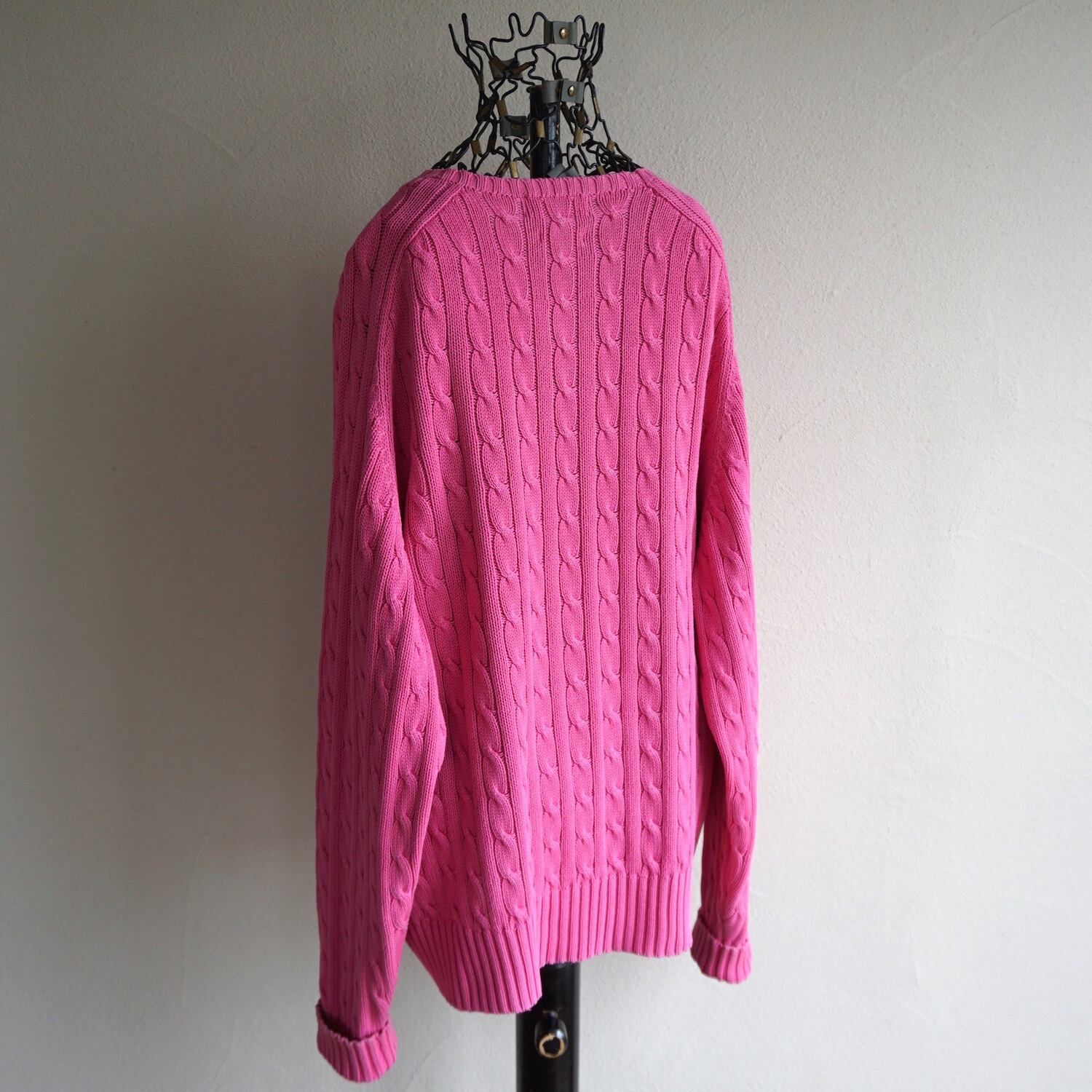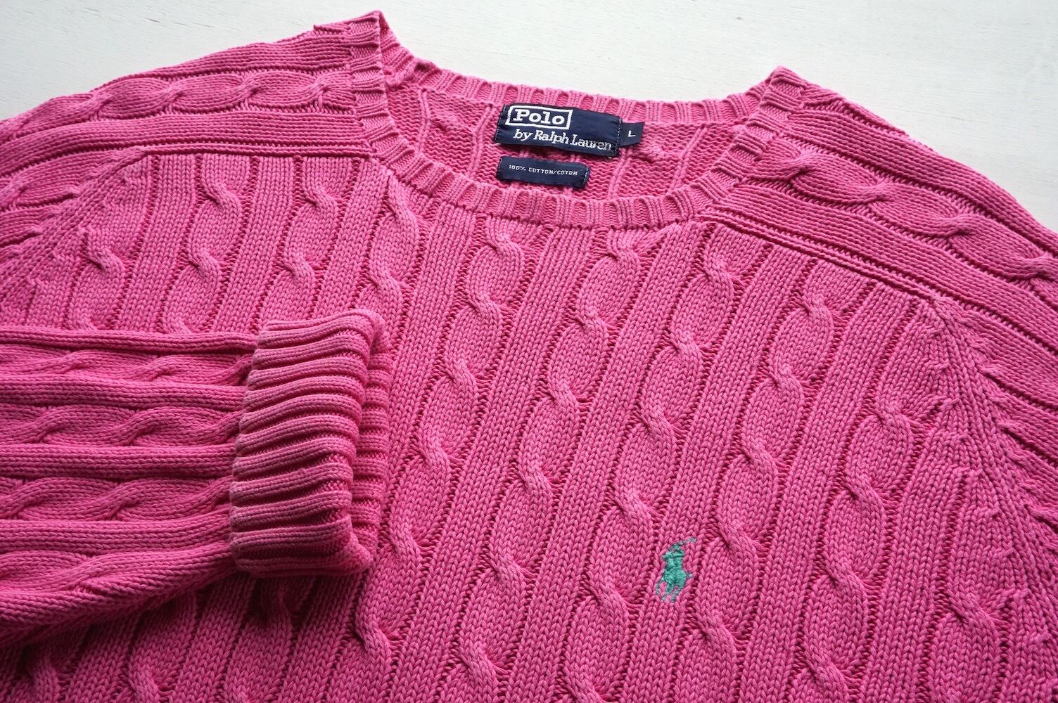 1990’s [Ralph Lauren] 100%コットン ケーブルニットセーター クルーネック チェリーピンク 表記(L) ラルフローレン