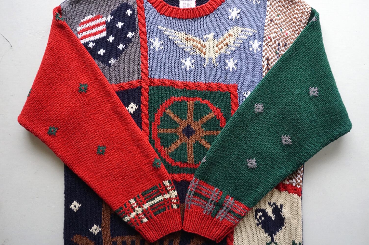1990’s [SKYR] アメリカンモチーフ柄 ラミー×コットン ハンドニットセーター 表記(women's L) ヴィンテージ