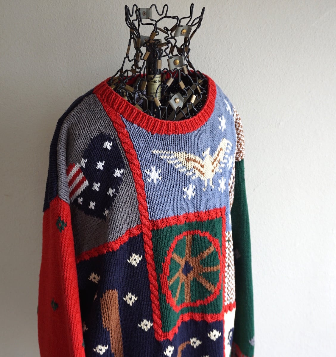 可愛いアメリカンモチーフが編み込まれたハンドニット(手編み)セーター。