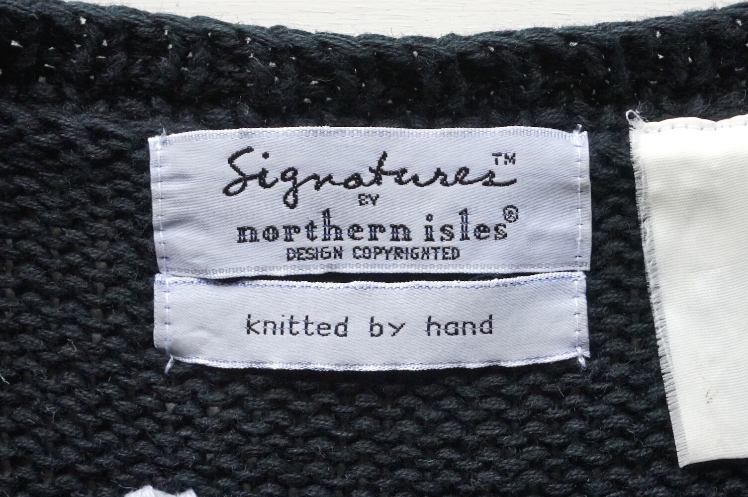 1990’s [Signatures by northern isles] パーティーモチーフ柄 ラミー×コットン ハンドニットセーター ブラック 表記(women's L) ヴィンテージ