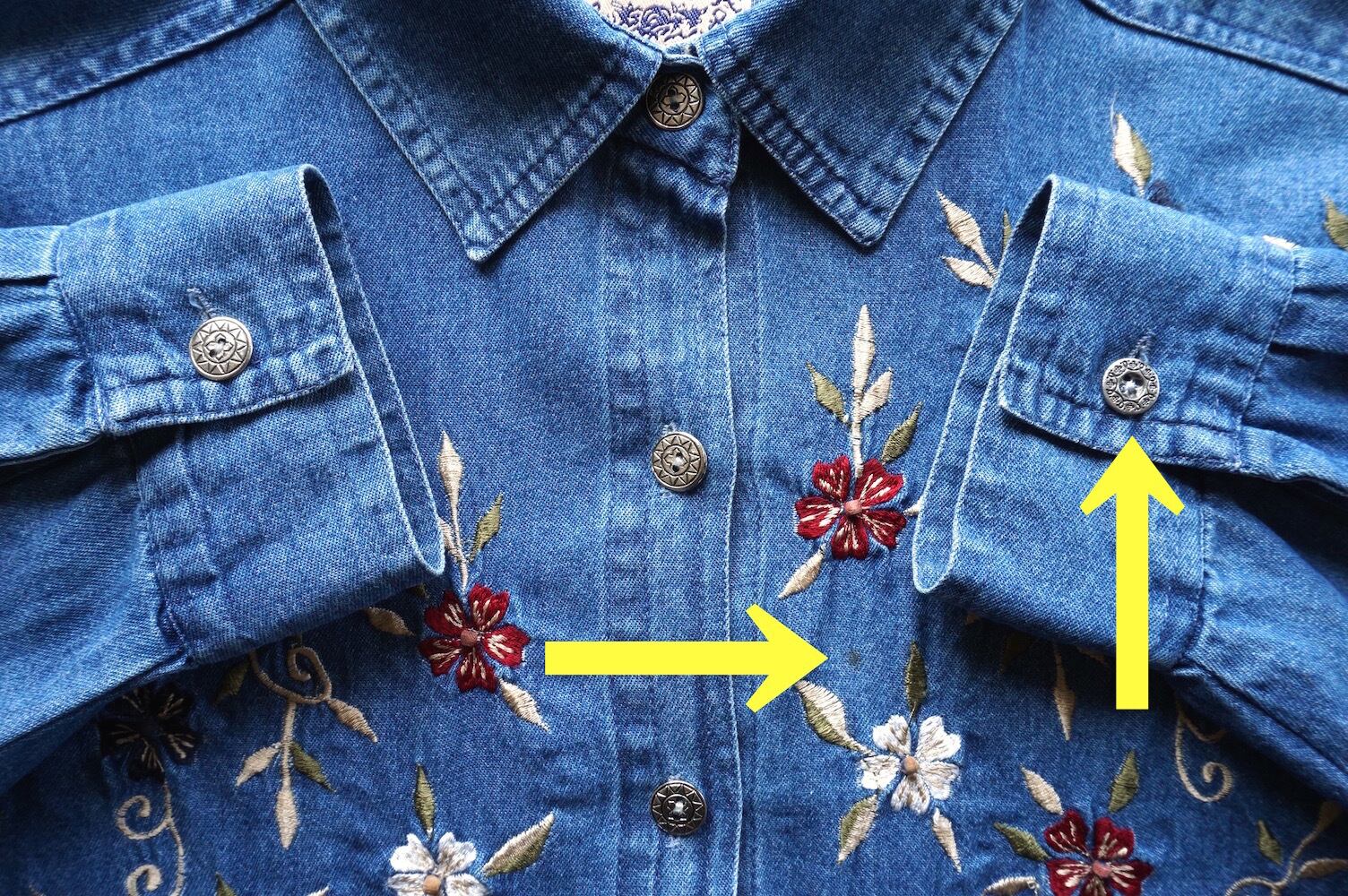 胸にフローラル&ボタニカル刺繍が施された、L/Sデニムシャツ。