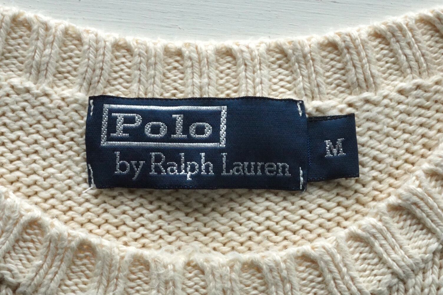 1990’s [Ralph Lauren] 100%コットン クルーネック ミドルゲージ ニットセーター アイボリー 表記(M) ラルフローレン