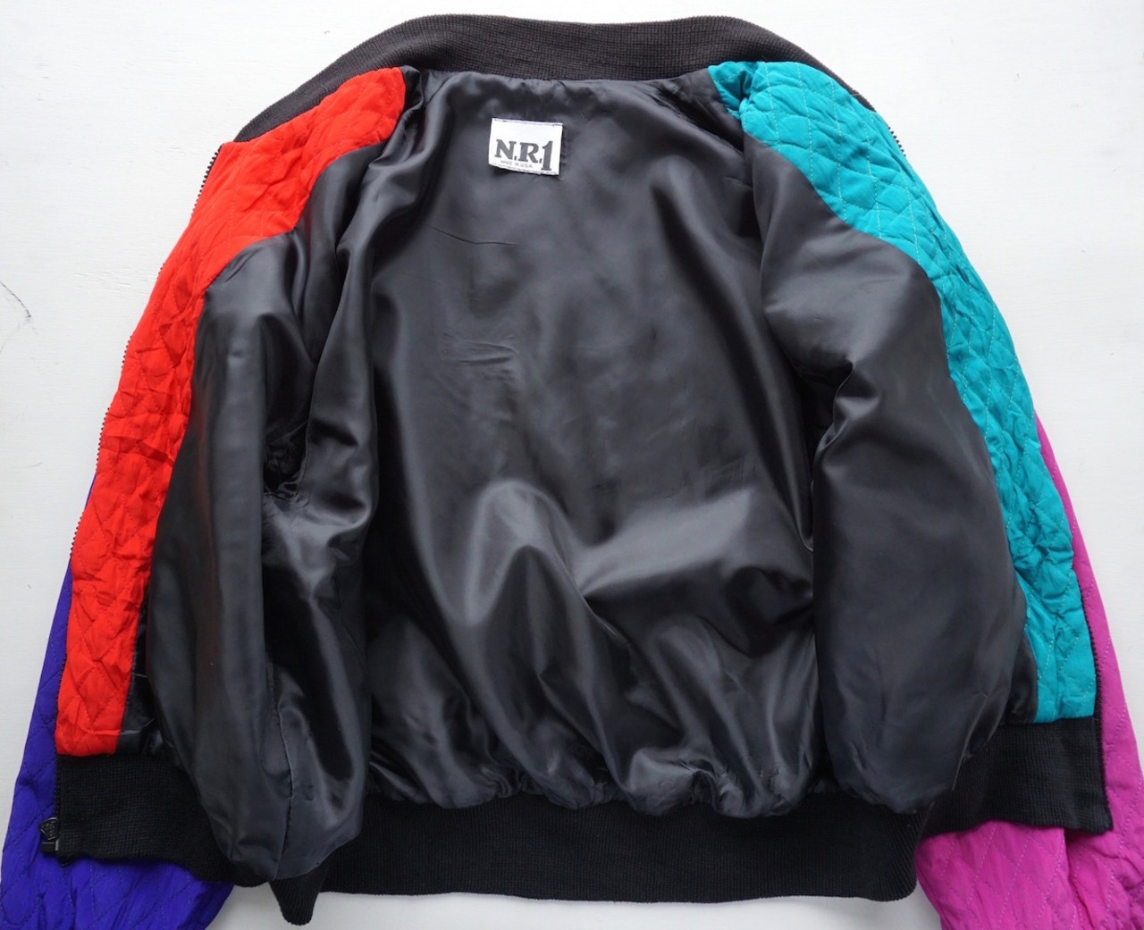 1980’s USA製 [N.R.1] クレイジーパターン キルティングブルゾン マルチカラー 実寸(women's M程度) スタジャン型 ヴィンテージ