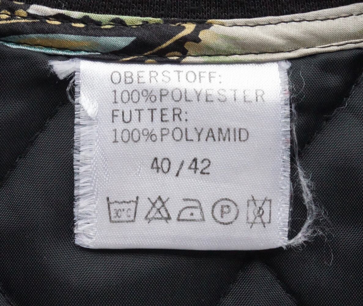 1990’s ユーロ キルティングサテンブルゾン ブラック×フローラル柄 実寸(women's L程度) ヨーロッパ ヴィンテージ