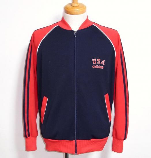 1980's adidas USAモデル3ライン2トーンラグランジャージー 紺×赤 表記(M)