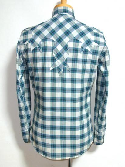 1950's オールドコットンウエスタンシャツ グリーン×ホワイト 実寸(S)