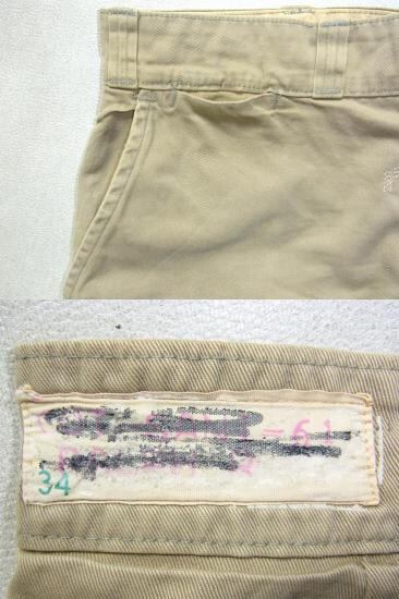 1950's USA ダブルニーワークチノパンツ TALONジッパーフライ コインポケット カーキ 表記(W34)