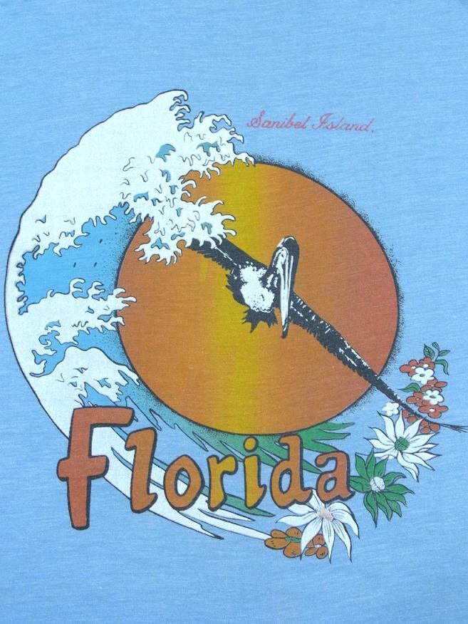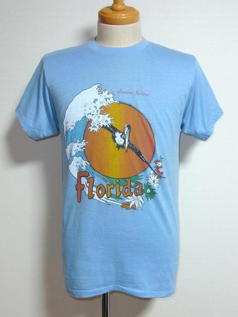 1980's フロリダ リゾートプリントTシャツ 水色 実寸(M~L)