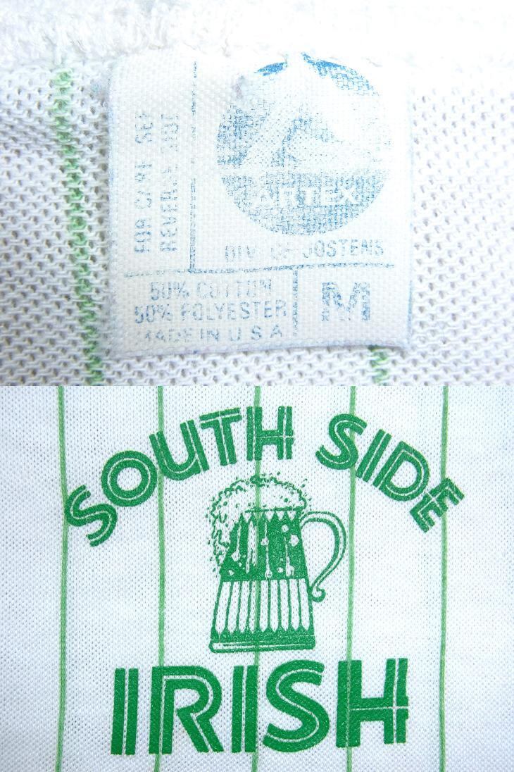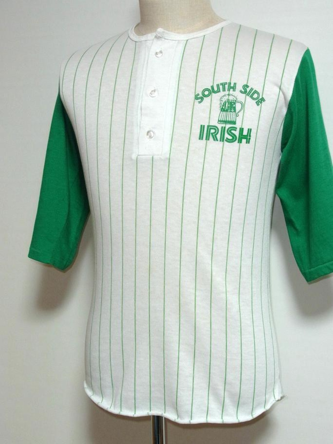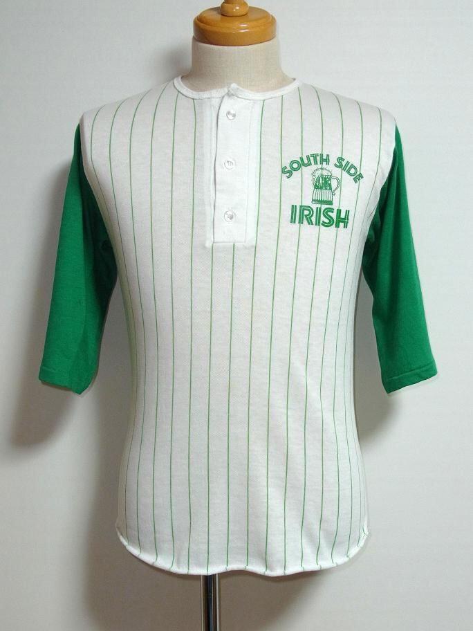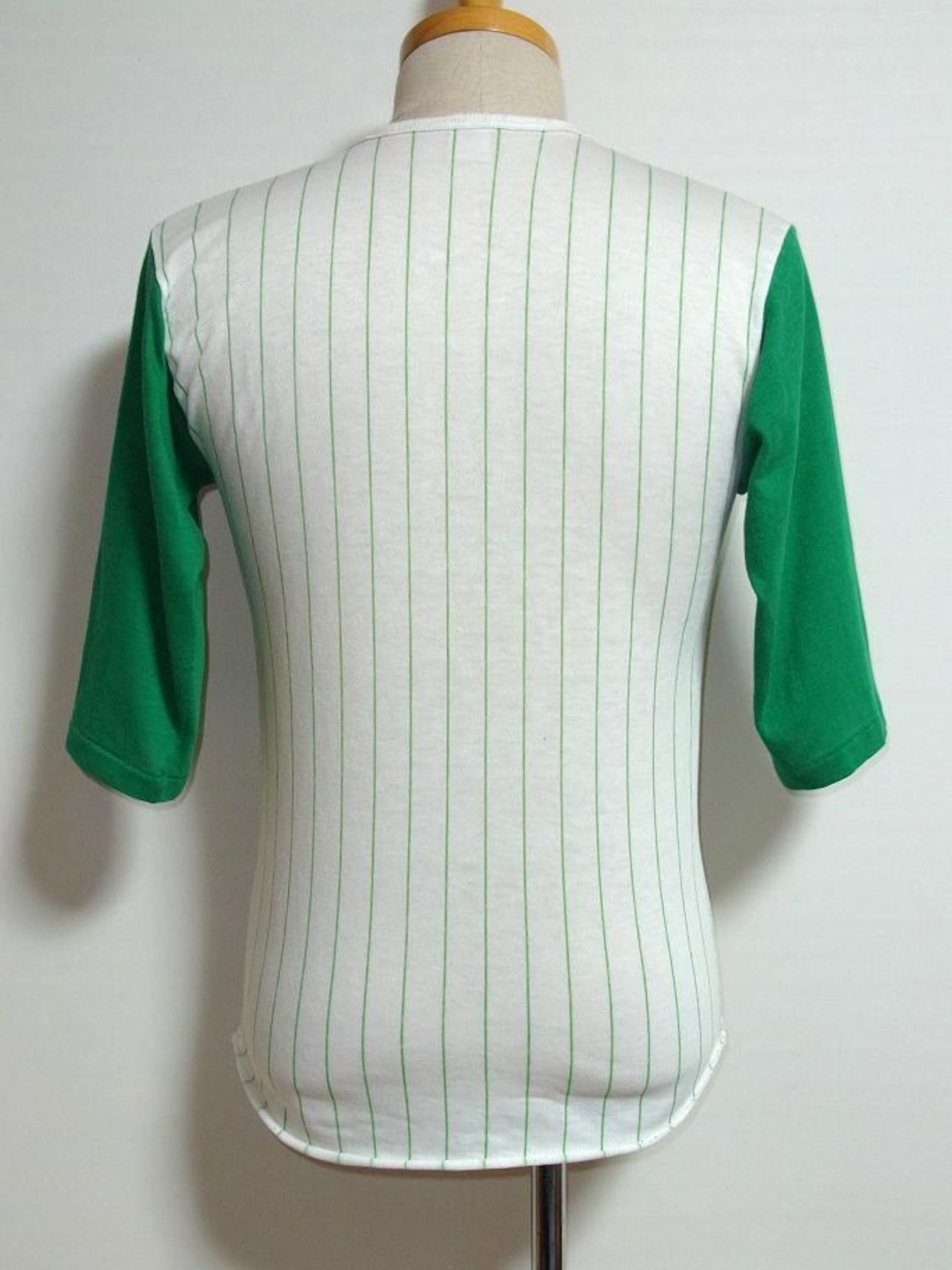 1980's ARTEX ピンストライプベースボールTシャツ 白×緑 表記(M)