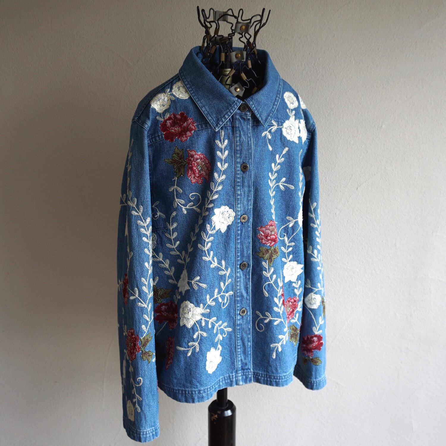 1990’s〜2000’s [DENIM & Co.] オーガンジー&レース フローラル刺繍 デニムジャケット 表記(women's M) エンブロイダリー