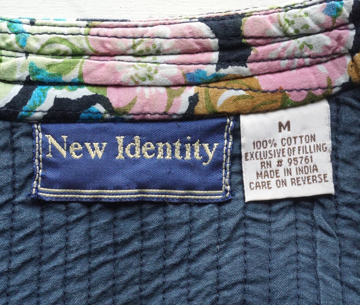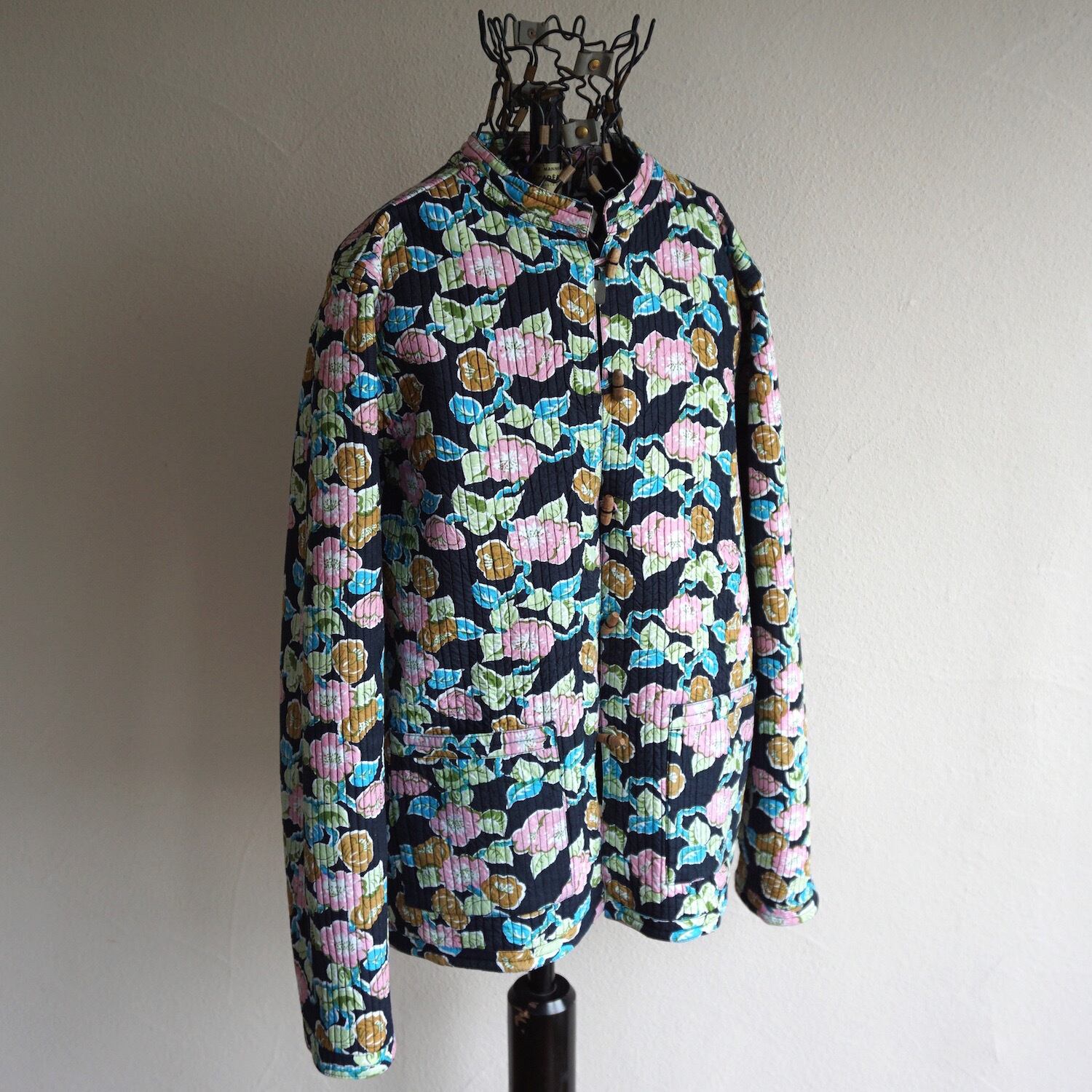 1990’s [New Identity] キルティングコットン チャイナジャケット ブラック×パステル系フローラルプリント 表記(women's M)