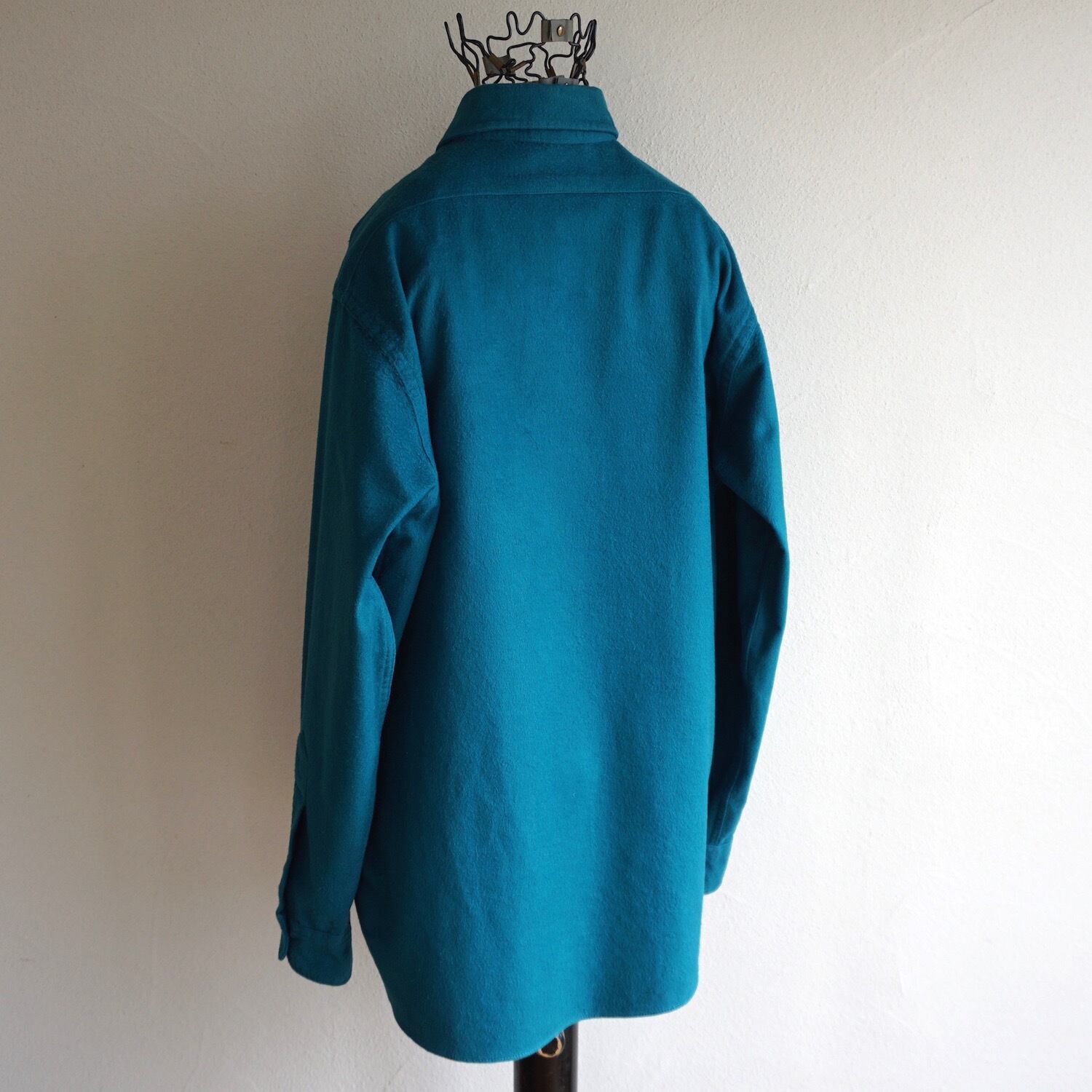 1980’s USA製 [L.L.Bean] シャモアクロスシャツ ワントーン 無地 ティール 表記(15 1/2) フランネルシャツ ヴィンテージ